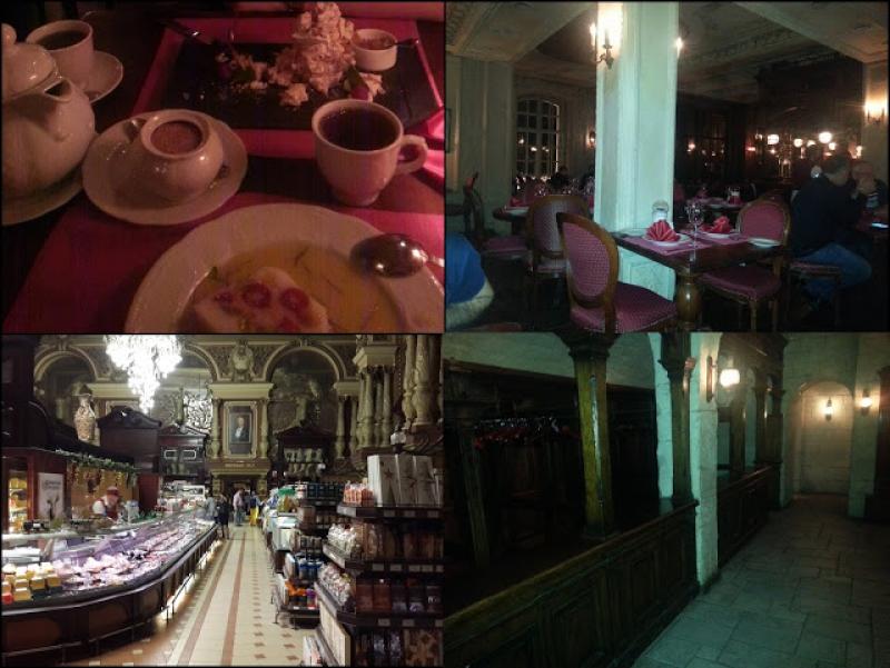 Biz yemek tercihimizi KFC den yana kullandık. dört kişi meşrubatlarla beraber tıkabasa yiyip içtik yaklaşık 950 rub yani yaklaşık 45 tl verdik. Türkiyeden neredeyse iki kat daha ucuz. Moskova'ya dünyanın en pahalı şehri diyorlar ama biz bunu çok göremedik avrupa buradan 3 kat daha pahalı. Alkol kullanmadığımızdan içkilerden haberimiz yoktu. Gerçi hediyelik eşyalar filan evet pahalı ama öyle çok lüks restaurantlara gitmezseniz Türkiyede ki gibi hatta krizden mi bilmem daha uygun yemek yiyebilirsiniz ulaşımı filan Türkiyeden çok çok ucuzdu mesela, ama her turistlik yerin her kademesinde ayrı ücretler alınıyordu ama artık oda işin doğasında var. Nedense su fiyatları çok pahalı geldi 500 ml lik su 90 ruble yani 4 lira filandı o yüzden küçük marketler var oradan alışverişinizi yapın bu marketler Moskovada çok az ve bulmak biraz zor türkiyede ki gibi bim, şok, a101 dir beklemeyin (Cennet Vatanim Benim). Bu arada şimdiye kadar anlattıklarım yeri gezmek ücretsiz dışarıdan yani. Buraları gezdikten sonra Tverskaya Caddesi üzerindeki Eliyevsky Gastronom (yiyecek dükkanı) na yürüdük. Burası bir yıldızlı migros gibi ama marketin binasının tarihi olması burayı meşhur bir yer haline getiriyor. Burayı gezip suyumuzu aldıktan sonra çıkıp hemen yolun karşısındaki yan caddede bulunan meşhur Cafe Puşkine gidelim dedik.