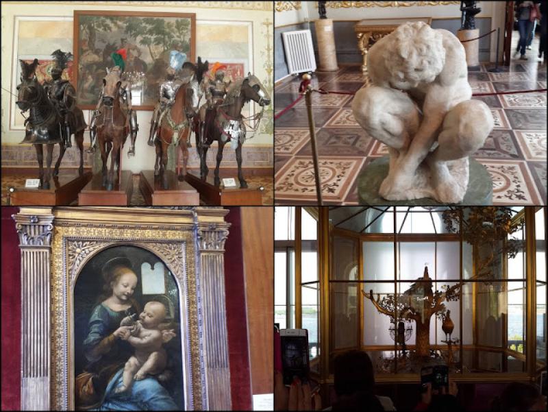 Hermitage Müzesinde 3 milyona kadar eser olduğu söyleniyor. Gerçekten dünyanın en büyük ilk üç müzesi arasında. Paristeki Louvre Müzesi kadar ihtişamlı ve büyük. müzede resmi görevli 50 tane kedi varmış evet kediler, farecikler çok olurmuş bu müzede o yüzden bu kediler gece müze içerine bırakılıyor fare avına çıkartılıyor ve sabah tekrar toplatılıyormuş. Güzel yöntem valla. Hermitage Müzesine girmek azıcık zahmetli bazı arkadaşların yazdığı gibi çok değil yani. Bazı blog sitelerinde biletinizi internetten alın sıra beklemeyin yazmışlardı. Bizde öyle yapalım dedik ama sitelerinde bir gariplik vardı normal bilet tam bilet yani müzenin inciğini çıncıgını ne varsa gezme full tur 600 rub yazıyor bizim parayla 30 tl ye denk geliyordu ama satın al sekmesine bastığınızda sizi ödeme birimine yönlendiriyor ve fiyat birden dolar üzerinden yaklaşık 16 dolar gibi bir rakamı gösteriyordu oda 45 TL ye geliyordu. Bizde neden fazla ödeyelim dedik sıra beklemeyi kabullendik. Gittiğimizde alırız demiştik iyide yapmışız. Çünkü bedava girdik. Neden mi çünkü öğrencilere bedavaymış müze evet bu noktayı sakın kaçırmayın arkadaşlar. Rusya da tüm yerel öğrenciler bütün müzelere bedava giriyor. Yabancı öğrenciler ise Hermitagede tamamen ücretsiz diğer müzelerde ise yarı fiyatına giriyor. Bir tek Kremlin Sarayında yabancı öğrencilerden yani bizden tam aldılar. Bu arada biz öğrencimiydik kısmen yani işin aslı yanınızda muhakkak bir öğrenci kartı götürün ister açıköğretim olsun ister benim gibi 10 yıl önceki öğrenci kartınız olsun. İster kardeşinizin olsun ister arkadaşınızın olsun isterse akbiliniz olsun yani zaten o kalabalıkta çok bakmıyorlar kartınıza bir şansınızı deneyin derim biz yaptık toplam müze ziyaretleri ve indirimli girişler dahil 200 liraya yakın kar ettik. Birde müze her ayın ilk perşembesi herkese bedava. Sıra bekleme işine gelirsek. Müze saat 10:00 da açılıyor. Sıra var evet ama 30-35 dakikada hemen geliyor korkmanıza gerek yok. Girişte Türkçe rehberler var deniyordu ama biz göremedik sesli guide almak istedik oda yoktu zaten. bu arada müzeye girmeden cep telefonunda hermitage müzesinin aplikasyonu var onu indirin hem müzeyi gezmenizde hem de gezdiğiniz yerdeki eserlerin ne olduğunu anlamanızda çok işe yarıyor. Girişte müze haritası veriliyor Bu haritada belli başlı önemli eserler var bence hızlandırılmış bir şekilde gezerseniz sadece bu eserleri görün yeter bence zaten ne zaman yetiyor ne de ayaklarda derman kalıyor. Koskoca müzede su çay satan bir yerde yok haberiniz olsun içeriye suda sokmuyorlar o yüzden suyunuzu girişte bolca için aksi halde tuvaletlerden içmek zorunda kalırsınız. Biz içmedik güvenemedik rusun suyuna. Çok yorulduk susadık ve sadece eserlere 1 saniye bakmakla 4 saat içerde kalıp kendimizi dışarı zor attık.