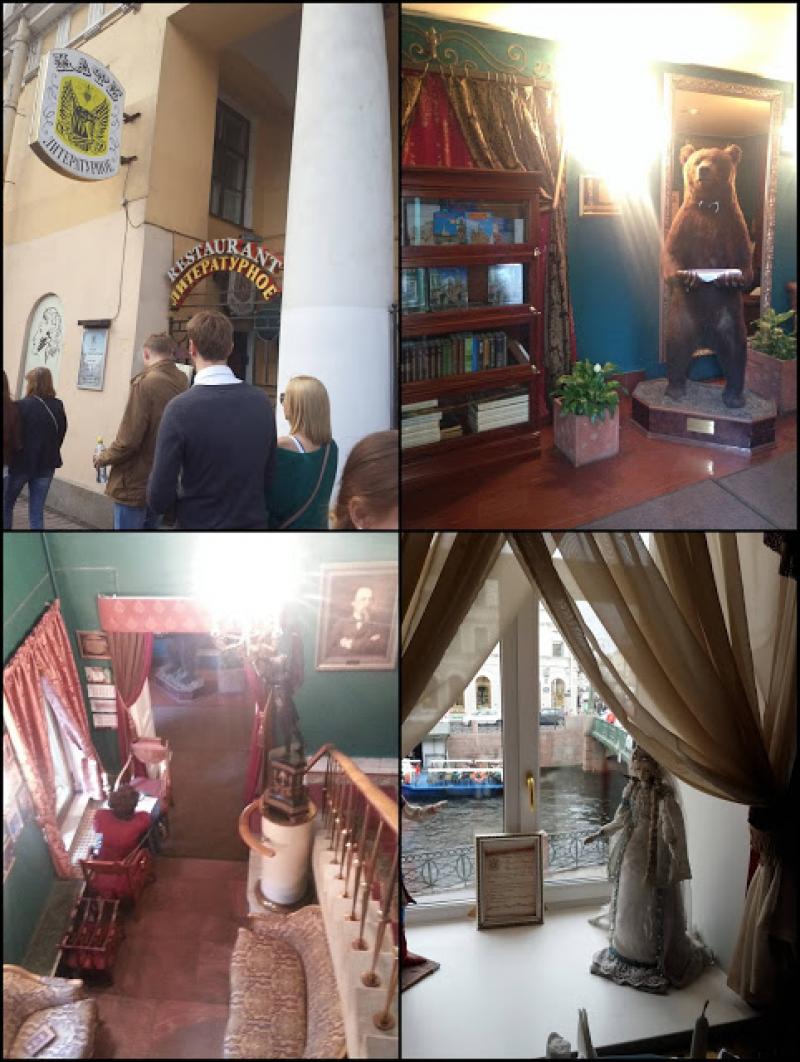 Artık epey bir yorulmuştuk ve yorgunluğumuzu atmak için bir beş çayının tam sırasıydı. Bunun için mükemmel bir yere gittik. Bu yerin ismi debiyat Cafe (LİTERATURE) idi Nevsky Caddesinde bulunan bu kafe tarihi yapısı ve iç dizaynı ile rus edebiyat kültürünü birebir size aktarıyor. St. Petersburg da en hoşumuza giden yerlerden birisi idi. Çayı demliklerde getiriyorlardı ve orijinal çay kullanılıyordu sallama çay değildi yani. Bir demlikten dört kupa çay çıkıyordu. Biz çayı çok sevdiğimizden dört demlik aldık ve yanında da menüden seçtiğimiz çeşitli tatlılardan aldık. Toplamda 75 TL gibi bir ücret ödedik ki ortama ve servise göre çok çok uygundu. Bu kafenin tarihi bir özelliği ise Alexsandar Puşkinin yaptığı düelloda ölmeden önce bu cafeye uğrayıp çay içmesiymiş. Girişte zaten Puşkinin bir balmumu heykeli de mevcut. gezimiz boyunca bu cafeyi sık sık kullandık. Kesinlikle burada çay içmeden dönmeyin.
