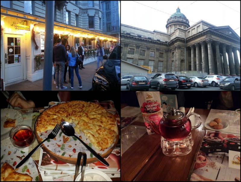 Konseri izledikten sonra karnımız iyice acıkmıştı geldiğimiz yolu tekrar yürüdük ve kazan katedraline vardık. Karnımızı doğurmak için hemen yakında kazan katedralinin arkasında bulunan Mamaliga Restaurantina uğradık. Mamaliga Restaurantın çeşitli pideler yapan bir gürcü lokantası idi. Gerçekten çok güzel pideler yapıyorlar.Bu pidelere haçupiri diyorlar. Biz dört kişiydik ve hepimiz farklı peynir çeşitlerinden dört adet sipariş ettik ama porsiyonlar baya büyüktü. Bir kişilik pide iki kişiye yeterdi yani ama kalanları söyleyince paket yapıp içine çatalını mendilini her şeyini koyup size geri veriyorlar. Yani servis yemekler ortam çok güzel ve çok nezih idi. Toplam 2760 ruble yaklaşık olarak 130 lira verdik. Bu ortama göre çok iyi idi fiyatı bence. ama bu pidelere ek olarak 2 demlikte çay içtik. Çay ücreti pidelerden daha pahalı idi yalnız ama 4 kişi tıka basa doyduk ve kalanları da yanımıza alıp diğer gün kahvaltı için çantamıza attık lokanta geç saatlere kadar açık bu arada. Karnımızı doyurduktan sonra epey yorulmuştuk. Direk otelimize geçip yarın için uykuya geçtik.