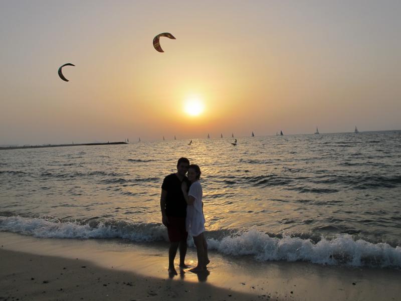 Gelin başka bir plaja gidelim şimdi de… Plajın ismi Kite Beach... JBR ve Atlantis'e göre biraz daha bâkir, daha sakin bir yer. Bu yüzden olsa gerek daha çok spor aktivitelerine rastlıyorsunuz burada. Uçurtma sörfü (kite) veya rüzgâr sörfü yapanları görmek mümkün. Ama yine size güzel bir deniz suyundan bahsedemeyeceğim. Oldukça sıcak, hatta şansımıza o gün inanılmaz yosunlu, koyu bir renk deniz ile karşılaşıyoruz. Ancak yüzmeden olmaz : ) Bu plajda sizi gökdelenler değil de zengin Arap ailelerinin yaşadığı villalar karşılıyor. Bir sokağa girdiğinizi caddelerin 2-3 katlı villalardan oluştuğunu ve neredeyse 2 veya 3 villa başına bir güzellik merkezi düştüğünü hayal edin. Her yer estetik, solaryum merkezleriyle çevrili. Şaşırmadık aslında. Hep duyduğumuz Arap yaşamını çıplak gözle görüyor olduk.