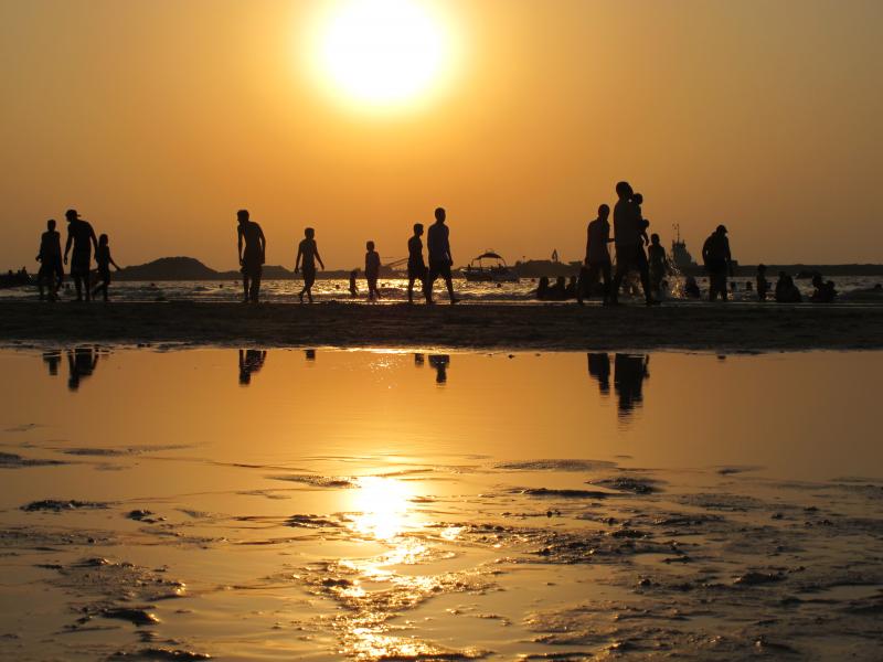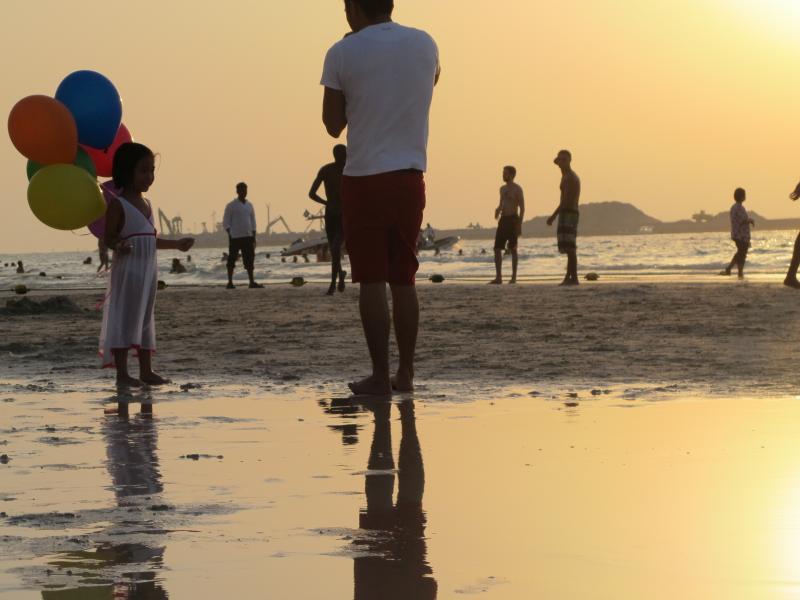 Sakın öyle yüzmeye bayılacağınız serin, masmavi bir su beklemeyiniz. Özellikle bizim Ege veya Akdeniz kıyılarımızla kıyaslamayınız. Bizim yaptığımız Hint Okyanus'ta İran Körfezi’ne de de denize girdik ya artık ölsek de gam yemeyiz tesellisiydi : ) Plaj, plajdaki kozmopolit ortam, koşturan sarışın mavi gözlü İngiliz bebekler ile Japon çekik gözlü çocuklar, bir yandan Pakistanlı olduğunu düşündüğüm gençler... Top oynayanı, elindeki müzik seti ile plajdakilere hip hop keyfi yaşatanlar objektifinize takılıyor.