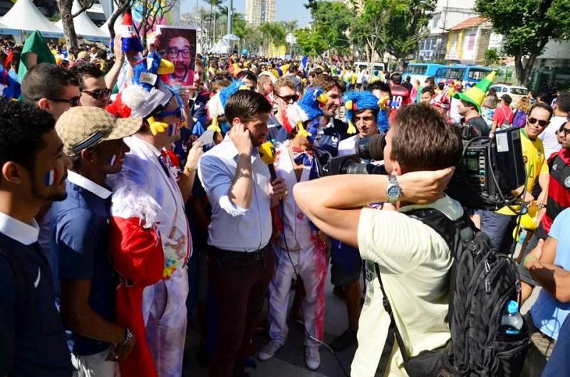 Bütün bunlar olurken haber yapmaya çalışan, röportaj yapmaya çalışan haberciler çılgın taraftarlar tarafından trolleniyorlar. Brezilya, Almanya, Arjantin, İngiltere ve Fransızlar tarafları ağırlıkta. Şahane bir ortam var.