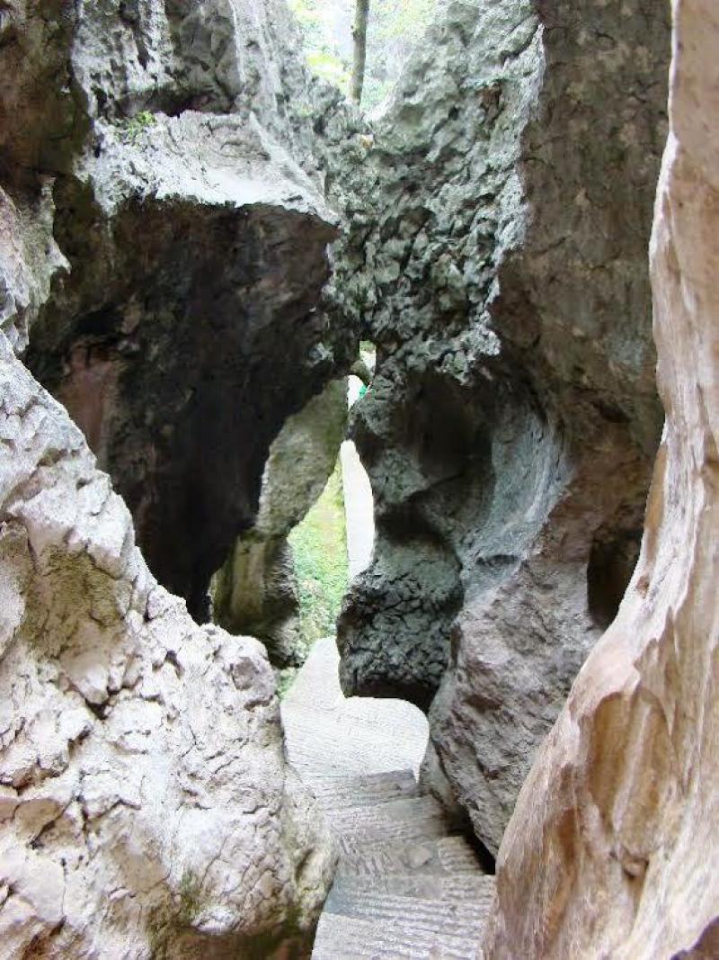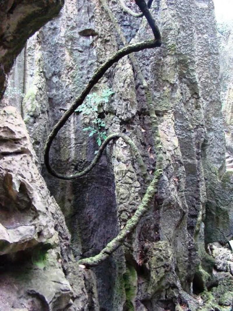 Taşların arasında ağaçlar ve bitkiler taşları sarıp sarmalamış, aralarından yürürken kimi yerde taşlar o kadar sık ve araları o kadar dar ki biraz göbeği büyük olanlar geçemiyor : ) Yer yer kayalardan oluşmuş tünellerden geçiyor, kimi zaman kayaların arasına yapılmış daracık merdivenler inip çıkıyoruz. Kimi yerde ise kayaların arasında yetişmiş ağaçların ve bitkilerin dalları taşları sarmış; korku filmlerindeki gibi, gece ürkütücü görünebilir. Bazı yerlerde ise rengârenk çiçeklerin sardığı kayalar muhteşem görünüyor. Bazı taşların üstündeki parçalarsa sanki her an üzerinize düşebilir.