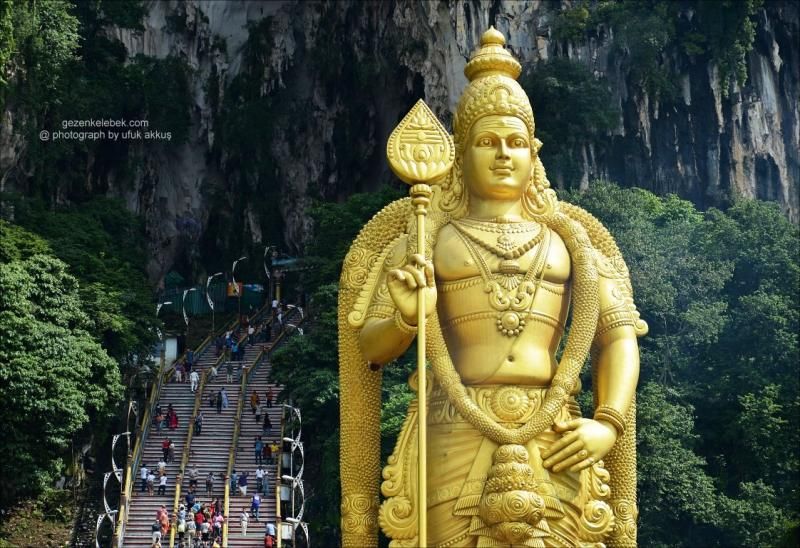 Mağara önünde bulunan dev heykel ise Batu Mağaraları'na asıl önemli hale getiren Hindu Tanrısı Lord Murugan heykeli. Dışarıdan bakıldığında Lord Murugan heykeli buraya apayrı bir görsellik katıyor ve biz de Batu Mağaraları'nı bu dev heykel ile hafızalarımızda tanıyoruz. Altın Kaplama olan dev Lord Murugan heykeli, 272 adet basamak ve devasa büyüklükteki mağarayı göz önüne aldığınızda gerçekten burası mutlaka ziyaret edilmesi gereken büyüleyici bir tapınak. Merdivenleri çıkmaya başladığınız da ise size etrafta bulunan maymunlar eşlik ediyor ve maymunların tek derdi elbette yiyecek ve içecekler.