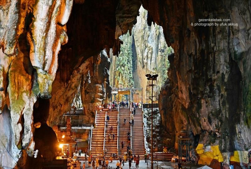 Mağaraya girdiğinizde görünen manzara ise son derece büyüleyici. Bu kadar derin ve büyük olan bir mağara daha önce hiç görmemiştim. Her şey güzel hoş ama bunu da yazmadan geçmek istemiyorum. Hindu tapınaklarının genel olarak Budist tapınaklarının aksine ne kadar çok pis olduğu artık daha çok dikkatimi çekmeye başladı. Bu durum Katmandu’da da dikkatimi çekmişti. Budist Tapınakları daima temiz ama Hindular için bu temizlik geçerli değildi. Aynı durum maalesef Batu Mağarası için de geçerli. Artık bu durumu görmezden gelmeye ve sadece ziyaretime bakıp fotoğraflarıma odaklanmaya çalışıyorum. Fotoğraflarımı çekerken de hemen yanında bulunan bir başka mağara olan Dark Cave’i de görüyorum. Dark Cave mağaracılık sevenler ya da macera sevenler için ayrı bir mağara trekking aktivitesi içeriyor. Şimdilik bana pek uymuyor. Ama benim ilgimi çeken, mağara önünden Petronas İkiz Kuleleri'nin ve KL Tower’ın silueti çok şık olarak gözüküyor. Fotoğraf için ise mesafe çok çok uzak. Yine de iyi kötü bir kare çekiyorum.