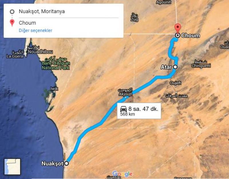 İlk olarak Büyük Sahra’nın derinliklerine nasıl gideceğimiz konusunda çalıştık. Moritanya’nın altyapısı maalesef ki çok kötü. Asfalt yerine pek çok kez toprak yoldan gitmek durumunda kalabiliyorsunuz. Fakat Nuakşot’ta gerçirdiğimiz birkaç günden sonra birlikte seyahat ettiğim arkadaşım Josh ile bir taksi tutarak yaklaşık 10 saat süren bir yolun ardından 20 dolarlık bir tutar ödeyerek Atar’a geçmeyi başardık. Burada, yöre insanları ile ettiğimiz sohbetlerle Nouadhibou-Zouerat arasında yer alan (rüzgarlar diyarı olarak da biliniyor) ve trenin her akşam üzerinden geçtiği Choum şehrine nasıl gideceğimizi öğrendik. Atar’dan Choum’a bir off-road jipi içerisinde 4 koltukta toplam 6 kişi hızlıca geçmeyi başardık.