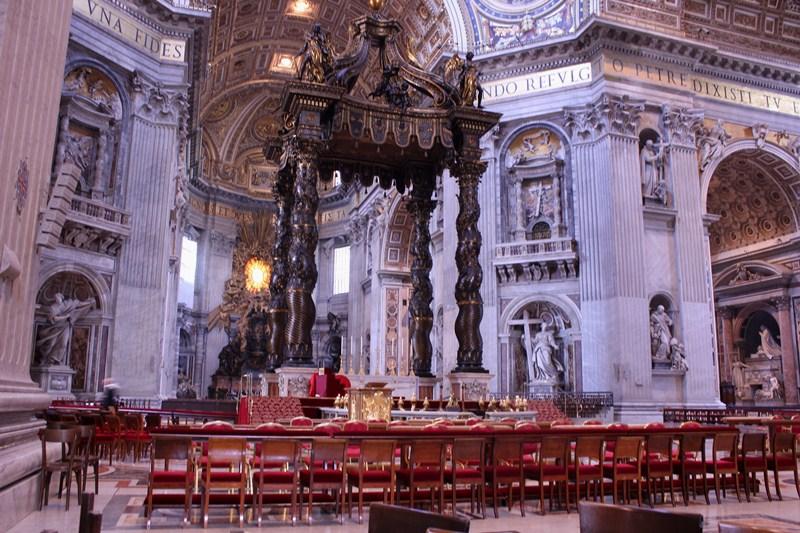 San Pietro’nun kubbesi Michelangelo tasarımı. 1624’te ısmarlanan Bernini’nin abartılı barok Altar tepeliği de Aziz Petrus’un mezarının üzerinde yükseliyor. Michelangelo’nun 25 yaşında yaptığı (nasıl bir yetenekse) Pieta heykeli dışında, Rönesans ve Barok sanatçılarına yaptırılmış yüzlerce sanat eseri bulunuyor.