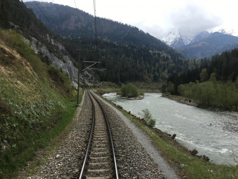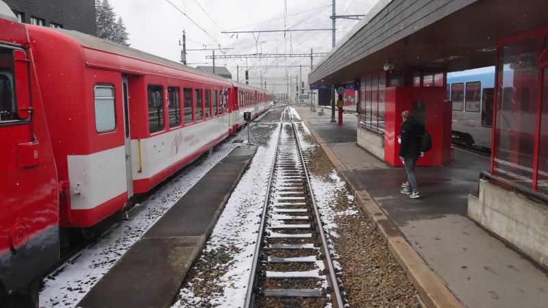 Oberalppass’ten Disentis’e 2033 metreden 1130 metreye inerken tren epey bir yokuş aşağı eğiliyor. Disentis’in en güzel yanı kilise ve manastırının estetiği.Disentis’te tren 15 dakikalık bir duraklama yapıyor. Böyle uzun beklemesinin nedeni ekip değişikliği. Glacier Express rotasının Zermatt – Disentis arasındaki Batı bölümünü farklı bir şirket, Disentis-Chur/St Moritz arasındaki bölümünü ise başka bir şirket işletiyor. Bu iki demiryolu şirketinin ortak hareket etmesinin nedeni bu trenin tarihinde saklı. 80 yıllık bir tarihe sahip olan Glacier Express aslında tek bir tren yolculuğu değilmiş, yolda bir trenden inip diğerine binmek zorunda kalıyormuş yolcular. Daha sonradan ise yolcular açısından tek bir yolculuğa çevirmek için demiryolu şirketleri aralarında anlaşmışlar ve şu anda tüm yolculuk, yolcular açısından kesintisiz olsa da Disentis durağında hem trenin operasyon personeli (garsonlar dışındaki tüm kondüktör, teknisyenler ve yöneticiler), hem de lokomotif değişiyor, aslında başka bir rotaya girmiş oluyorsunuz.