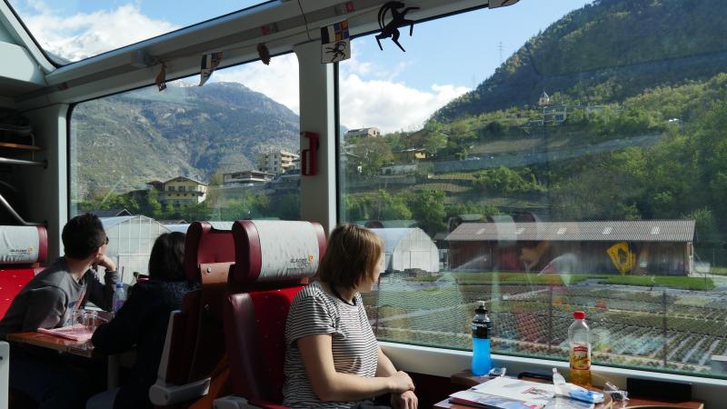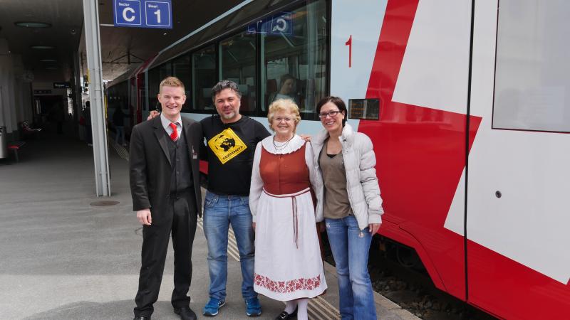 Tam bu değişim sırasında, görevi devralan demiryolu şirketinin görevlisi, şirin bir teyze yerel kıyafetleri içinde gelip herkese hoşgeldin çikolatası dağıtıyor. Biraz konuştuğumuzda öğreniyoruz ki üzerine giydiği kıyafet buradaki kantonun pazar günleri giydiği kıyafetmiş. Bize bir kaç dans figürü bile gösteriyor çikolatacı teyze.