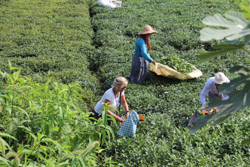 Biraz hayal kırıklığı ile ayrıldığım Uzungöl’den. Sonra yol boyu izlediğimiz yemyeşil dağların yamaçlarındaki çay bahçeleri ve çay toplayan köylü kadınları bizlere görsel güzellikler sunuyor. Toplama işlemini daha yakından görebilmek üzere yamaçlardan ziyade yola yakın bir tarlada çay toplayan işçileri yakalamak için herkes dikkat kesildi ve biraz sonra bir tarla gördük. İşlerin çoğu yabancı uyruklu, nedeni de daha az gündelik talep etmeleri imiş.