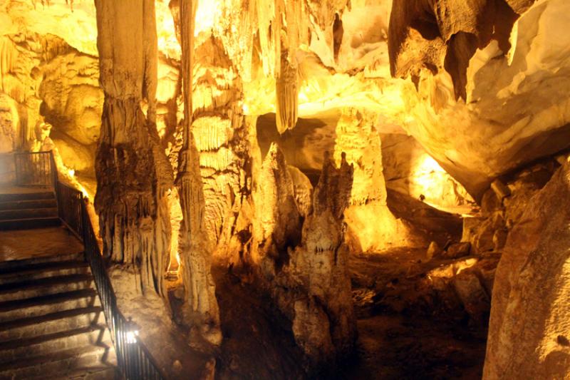 Derin bir sessizlik hakim kapıdan girer girmez gördüklerimiz karşında iyi ki gelmişiz diyoruz ve ilerliyoruz. Her geçtiğimiz noktada farklı farklı sarkıtlar var. İçeriye demirden merdiven yapılmış ve merdivenlerden yukarı doğru çıkıyoruz. Yukarı çıktıkca görsel şölen daha da artıyor.