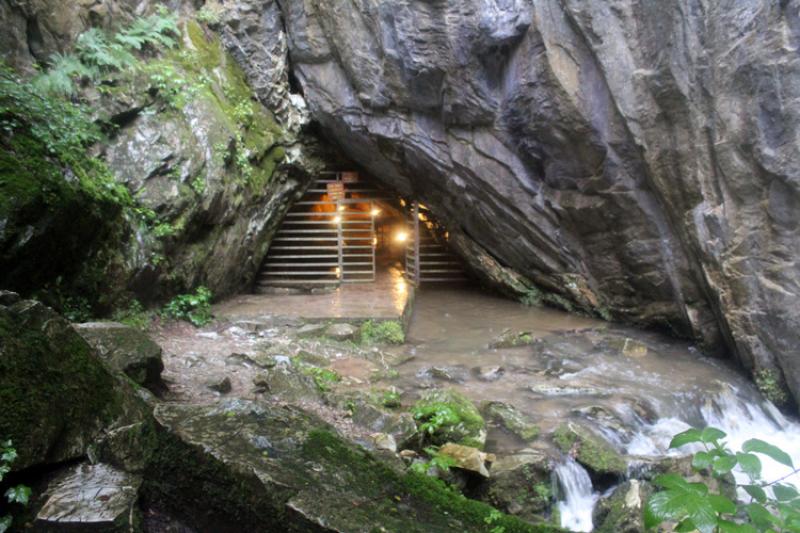 Üstelik bizden başka mağarayı görmek için gelen kimse yoktu. Yani mağarayı kendimiz geziyoruz görevli de bizimle birlikte gelmiyor. Mağaraya ulaşabilmek için ya dar çamurlu orman yolunu ya da taşlı olan akarsuyun içinden gidecektik. Biz havada soğuk olduğu için çamurlu yolu seçtik. Bir yandan da korkuyorduk çünkü eşim o zaman hamileydi ve arada ayağımız çamurdan dolayı kayıyordu. Akarsu kenarında ilerlerken taşların arasından mağaranın kapısına geliyoruz.
