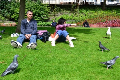 Alışveriş bizi oldukça yoruyor. Ayaklarımız bizi Princess Street Garden’a götürüyor. Kendimizi çimlerin üzerine bırakıyoruz. İskoçlar güneş çıkar çıkmaz kendilerini güneşin kollarına bırakıyorlar. Gölgede oturan bir tek İskoç göremiyoruz. Ağaç gölgelerinde oturanlar sadece turistler. Anneler küçük çocuklarını getirmişler parka. Çocuklar çimlerin üzerinde yuvarlanıyor. Daha önce de yazmıştım. Martılar sosyal hayatın içinde. Çimlerin üzerinde martılar dolaşıyor. İnsanlara o kadar yaklaşıyorlar ki, elinizi uzatsanız neredeyse tutacaksınız. Ayrıca bir çok güvercin dolaşıyor çimlerin üzerinde. Kızım kendisi için hazırladığımız sandviçini martılara ikram ediyor. Martılar bir lokmada yutuyor kızımın onlara attığı kırmızı İskoç peynirli ve çilek marmelatlı sandviç parçalarını.
