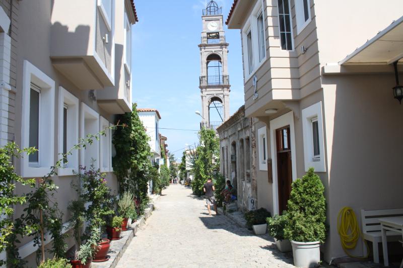 Rum Mahallesi bakımlı evleri ve sokakları ile daha dikkat çekici duruyor. Sokakların birbirini dik kesmesi düzenli bir hava veriyor. Mahallenin tam ortasında bir kilise ve saat kulesi yer alıyor. Bir zamanların kahveleri, meyhane ve tavernaları şimdi turistik restoran, kafe ve dükkan olarak hizmet veriyor. Eski Rum evlerinin bir kısmı yazlık ev bir kısmı da pansiyon ve otel olarak kullanılıyor.