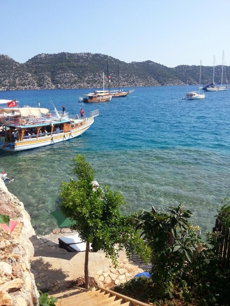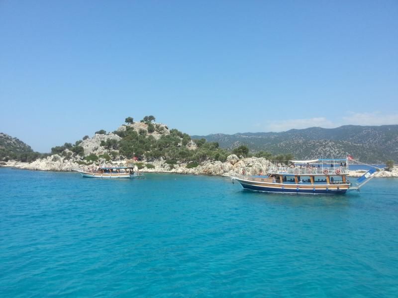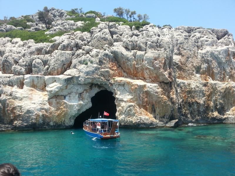 Günlerimizi dolu dolu geçirmek istediğimizden her gün farklı bir yere gittik. Diğer bir aktivitemiz tekne turu oldu. Ona daaynı tur aracılığıyla katıldık. Tekneler tura Üçağızköyünden başlıyorlar. Burası gidilecek koylara daha yakın olduğundan ve yüzmeye daha çok vakit kalması açısından tercih ediliyor. Yarım saat kadar karayoluyla gidiliyor. Birçok güzel koya gidip yüzme şansı bulabiliyorsunuz bu turlar sayesinde. Akvaryum Koyu, Tersane Koyu, Batık Şehir, Esmeralda Koyu, Korsan mağarası, Gökkaya koyu, Burç koyu son olaraktan Simena’ya gidiliyor. Bu koylarda Likyalılara ait birçok eser var. Kayık şeklindeki Likya mezarlarını görebiliyorsunuz. Likyalılar ölümden sonrada yaşama inanan bir ırk ve bu sebeple eşyalarıyla gömülüyorlar. Ancak gerçek hayatta insanlar bu inanca saygı duyamayacak kadar maddiyat düşkünü olduklarından İtalyan korsanlar bu mezarların her birini yağmalamışlar. Diğer yandan şehrin çoğu bölgesi sular altında kalmış. Surları suyun altından görebiliyorsunuz. İlaveten Likyalılara ait kalıntıları görebiliyorsunuz. Korsan mağarası da turun dikkat çeken manzaralarından bir tanesi, mağaranın içine tam giremiyorsunuz ancak tekneler bayağı yanaşıyorlar içeriyi biraz olsun görebilmeniz için. Simena ise inanılmaz güzel bir yer. Burada manzarayı görebileceğiniz bir kale var ancak o kadar yürümek istemezseniz Rahmi Koç İlköğretim Okulunun manzarasının da kaleden görebileceğiniz manzaradan aşağı kalır yanı yok. Bu ilkokulun ilginç bir yanı var, oda sadece 4 kişiye eğitim veriliyor olması. Simena’ya karayoluyla gidilemiyor ancak burada konaklamak mümkün pansiyonlar sayesinde. Bir de oldukçada turistik eşya satan yer var. Sonuç olarak bize yeni yerler görme, şahane koylarda yüzme fırsatını sunan tekne turundan çok keyif aldığımızı söyleyebilirim.