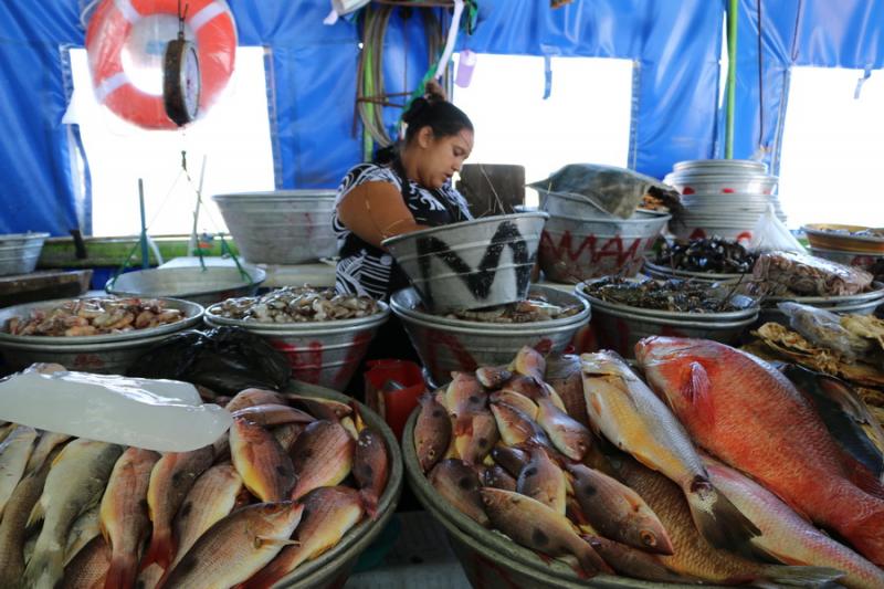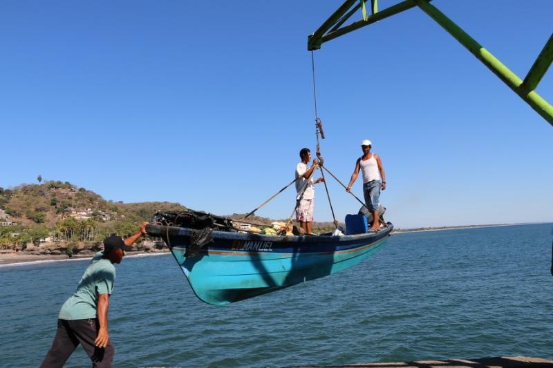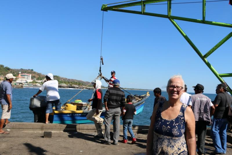 İskelenin sonunda balıkçı motorlarının okyanusa indiriliş ve okyanustan vinçle karaya alınışlarını izledik. Denizden çıkarılan teknelerdeki balık hemen oracıkta satılıyor. Teknenin vinçle çekildiğini gören halk taptaze deniz ürünlerinden almak için teknenin etrafına toplanıyor.
