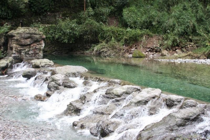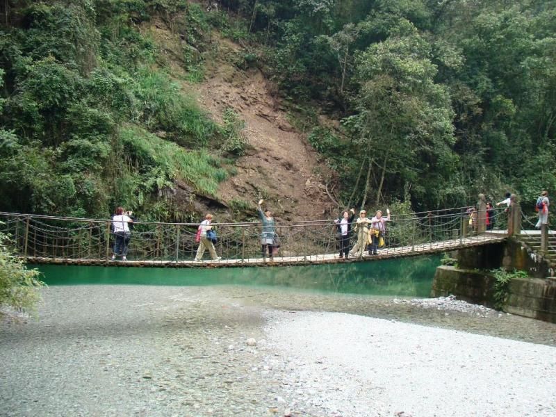 Yeşilin her tonunda çeşit çeşit ağaçlar, palmiyeler, şırıl şırıl akan bir nehir, üzerinde adeta Çin’in simgesi gibi ip bir köprü… Ayrıca çok dekoratif taş köprüler, uzunca bir şelale ve etrafında çok güzel kamelyalar yapılmış.