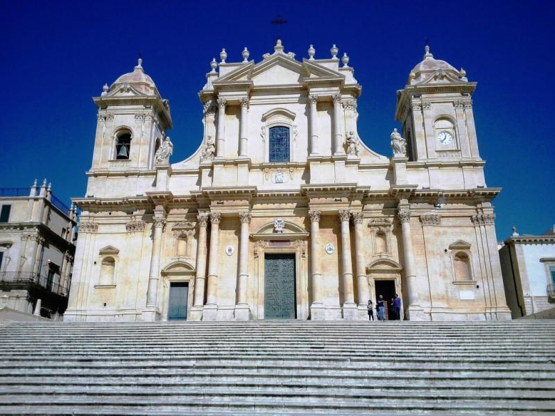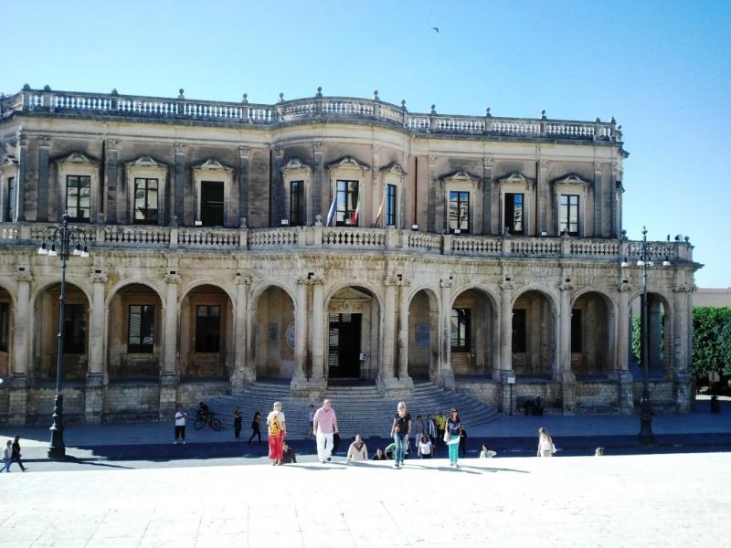 Noto’da Belediye Meydanı, kentin merkezidir. Meydanı süsleyen karşılıklı iki yapıdan biri Ducezio Sarayı ki bu saray belediye binasına dönüştürülmüştür. Karşısındaki diğer yapı ise; San Nicolo Katedrali’dir. Barok stilin uyumu ve benzersiz mimari bir yapı sergilemektedir. Ayrıca Noto’nun panoramik manzarasını seyredebileceğiniz tarihi bina ise San Carlo Kilisesi’dir. Aslında Noto kentini dümdüz eden 1693 depreminden sonra, yeniden geç barok tarzda böylesine güzel bir kentin kurulabileceğine insan inanamıyor.