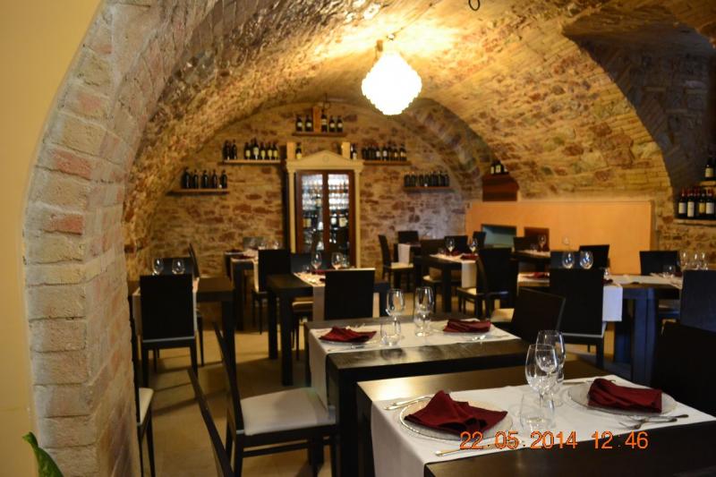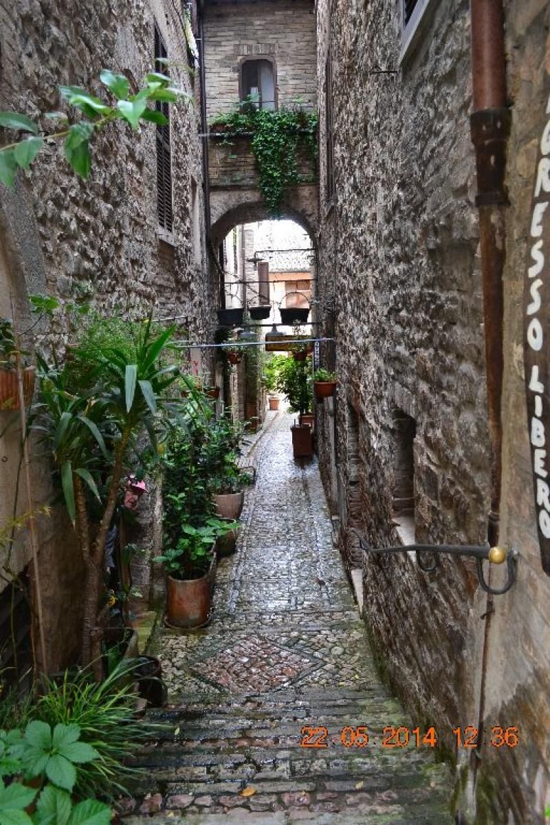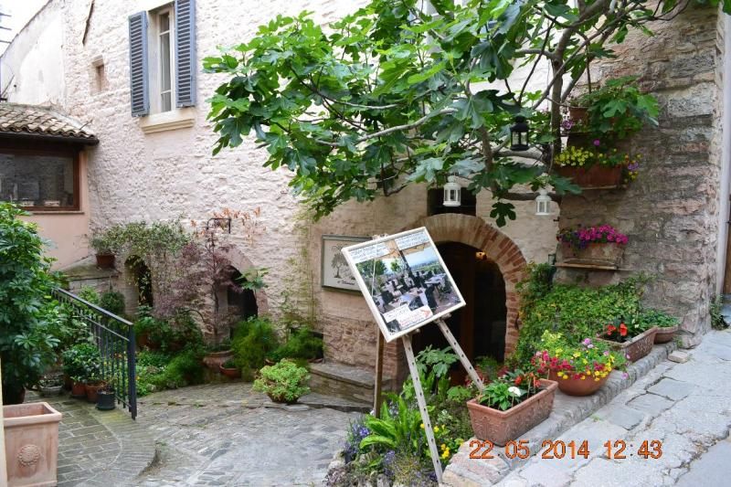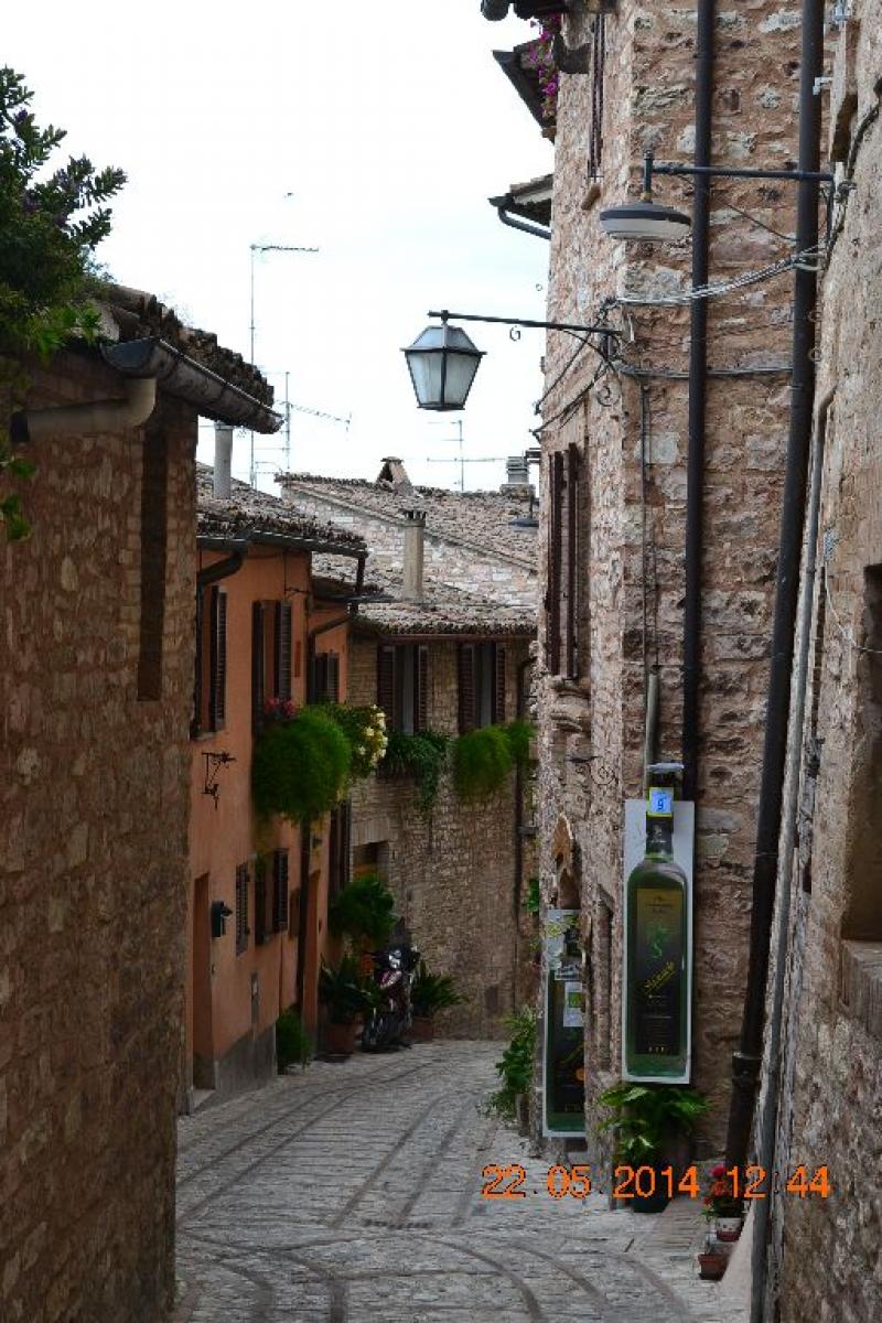 Küçücük bir kasaba ama daracık sokaklarında karşınıza bir trattoria veya osteria çıkıveriyor (Osteria; son derece basit, yazılı mönüsü bile olmayan ve şef o gün ne yemek yapmak istediyse o yemeklerin yendiği bir lokanta. Trattoria ise osteria'dan biraz daha ciddi ama ristorante kadar lüks ve pahalı olmayan lokanta). Biz de daracık bir sokakta aşağıdaki vadiye bakan bahçesinde meyve ağaçları olan şirin bir restoranda “şarap turu”muzda en beğendiğimiz şarabı menüde görünce, bir de ummadığımız kadar güzel “pasta”lar yiyince Spello aklımda yer edecek bir kasaba oluveriyor.