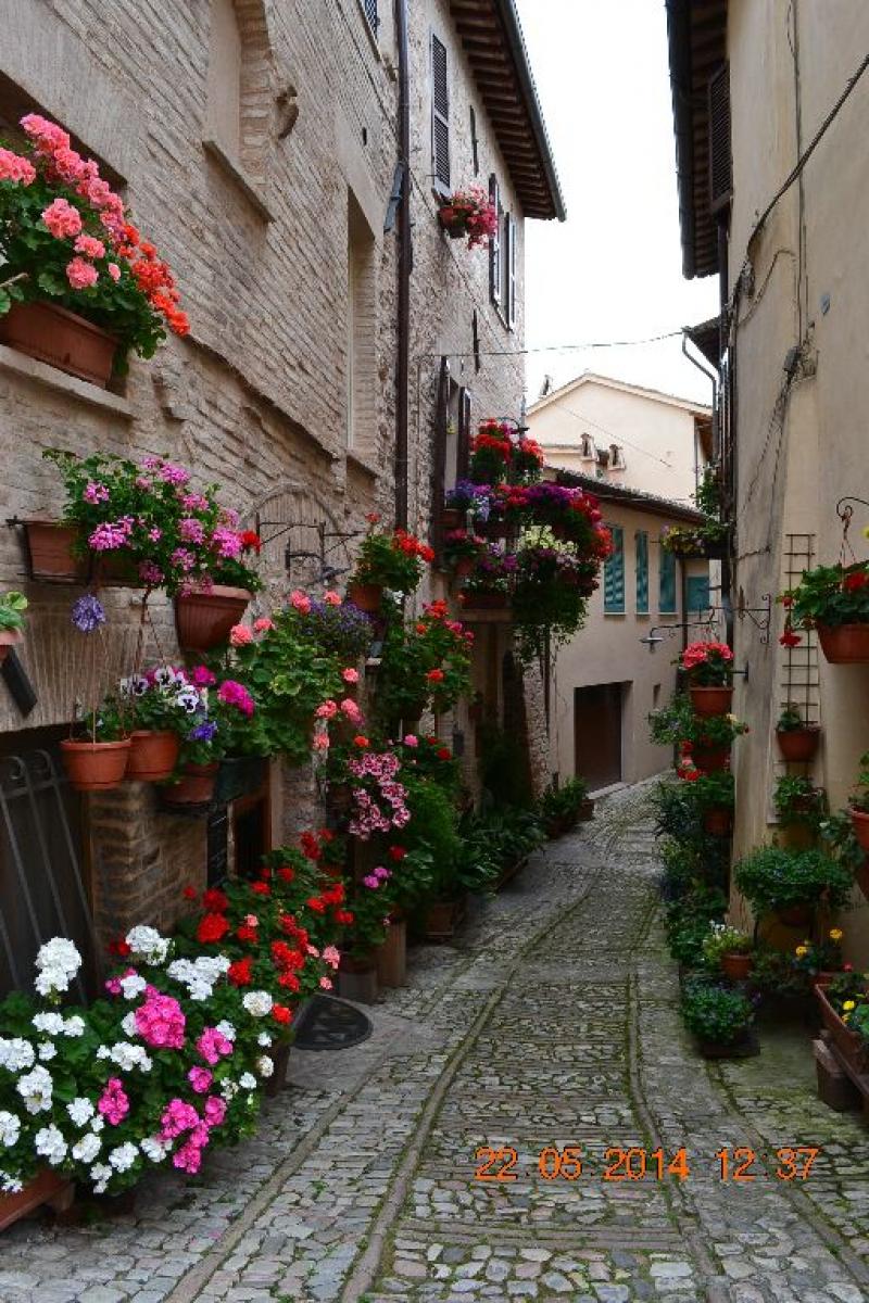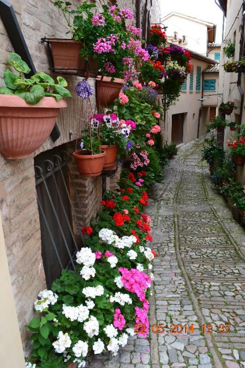Assisi’nin 10 km ötesinde görülmeye değer olduğunu araştırmalarımda öğrendiğim bir başka tarihi kasabaya gidiyoruz, iyi ki de gidiyoruz; Assisi’nin komşuları “Umbria’nın trio kasabaları”ndan biri olan Spello. Buraya kadar gezdiğimiz her şehir ve kasabada çiçekler içinde balkonları ile evleri anlattım, pencereleri ile taş evlerin sevimliliğinden güzel sokaklardan bahsettim ama bu güne kadar belki de gördüğüm en güzel çiçekler, en yoğun çiçeklerle süslenmiş evler, en daracık sokaklar ile en sevimli mi sevimli, şipşirin küçücük bir kasaba burası. Birkaç Ortaçağ taş kapıdan girilen şehir, Ortaçağ duvarları ile çevrelenmiş. 1159 senesinde yapılmış Santa Maria Maggiore; cephesi Romanesk, çan kulesi 13. yüzyıla ait ve meşhur Umbrialı ressam Pinturicchio adıyla bilinen Bernardino di Betto tarafından yapılmış, fresklerle süslenmiş. 11. yüzyıl yapımı Sant'Andrea, 13. yüzyıl yapımı San Lorenzo, 11. yüzyılda Romanesk mimarisi ile yapılmış şık bir yapı San Claudio görülmeye değer yapıları… Yine de benim bu kasabayla ilgili aklımda kalan şey; şahane çiçekler.