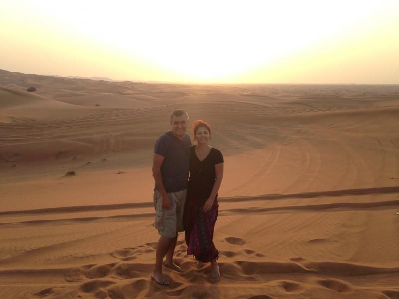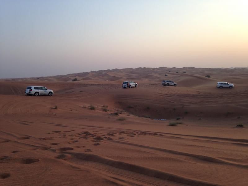 Ölmeden önce yapılması gereken aktivitelerden birini gerçekleştirmek için otelimizde bekliyoruz. Birazdan 4X4 jipler çöl safarisi için bizi almaya gelecekler. Dubai'ye tur ile geldiyseniz firmanız aracılığı ile (80-90 $) ya da hemen tüm otellerde bulunan aktivasyon masaları aracılığı ile (50-60 $) safariye katılabilirsiniz. 6 kişilik araçlarımıza biniyoruz ve yol almaya başlıyoruz. Çöle doğru giderken Dubai silüeti dikkatimizi çekiyor ve bir süre sonra tüm araçların mola yerine geliyoruz.