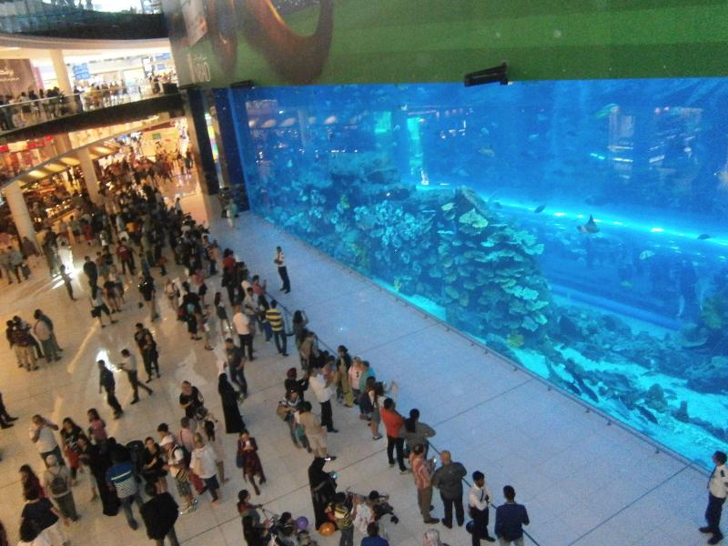 Dubai Mall: Dünyanın en büyük AVM'si, 1200 mağaza, 14.000 araç kapasiteli otoparkta aynı anda 3.000 kişinin yemek yiyebildiği iki ayrı restoran bölümü ve yine dünyanın en büyük akvaryumunu içerisinde barındırması ile hayran olacağınız bir binadır. Metro red "Burj Khalifa".