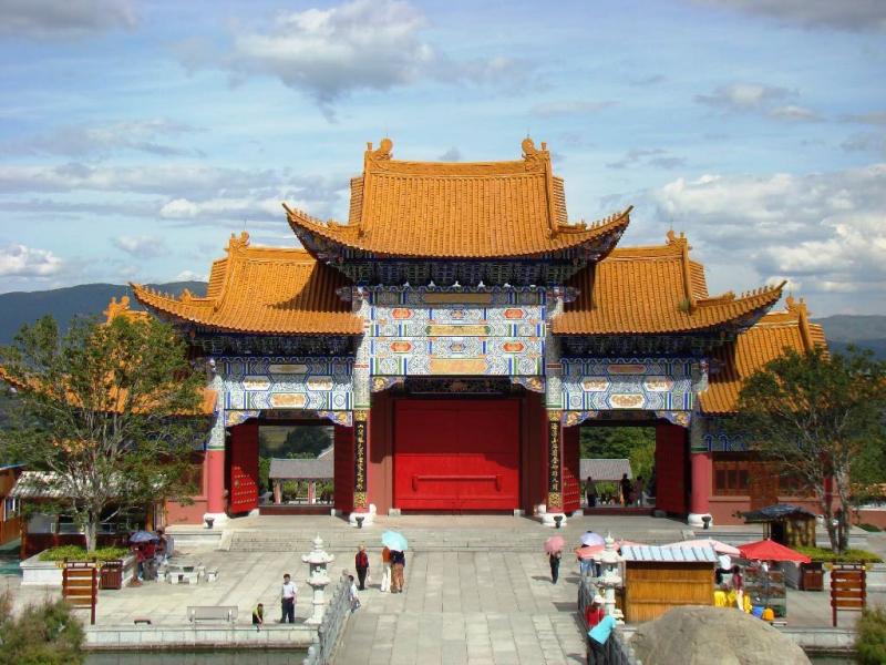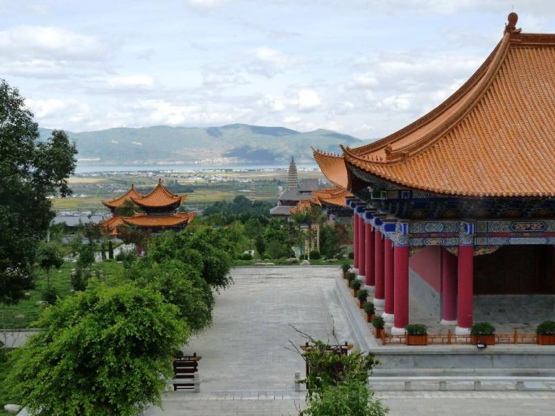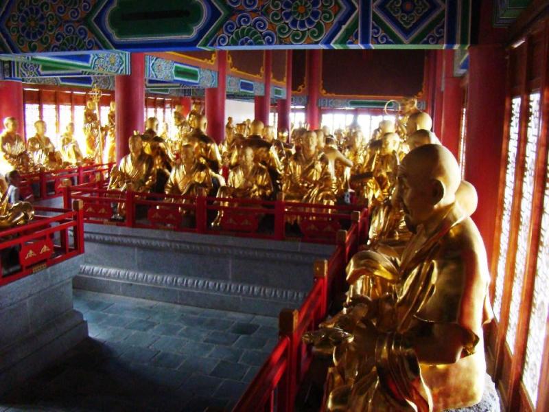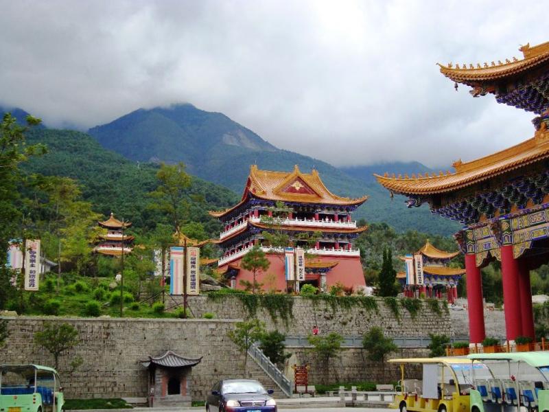 Güneydoğu Çin'in en büyük Budist tapınağı olan ve 32 Buddha heykeli, 7700 ejder figürü ile Zhongsheng Tapınağı, Mahayana ve Sagramunia mabetleri, tamamı altın varaklı Arhai denilen Tanrı heykellerinin de bulunduğu turistik bölge 1000 m2’lik bir alana yayılmış. Görüntü inanılmaz, altın heykeller gözlerimizi kamaştırıyor. Uzakdoğu’da hep som altından Buddhalar, heykeller, objeler görmeye alıştık ama irili ufaklı onca heykelin altın olması da oldukça ilginç. Tapınakların bulunduğu alanın en üst bahçesine çıkarsanız aşağıda kademe kademe tapınak binaları, 3 Pagodalar, Dali şehri ve Erhai Gölü dizilmiş aşağıda harika görünüyor ve çok güzel bir manzara oluşturuyor.