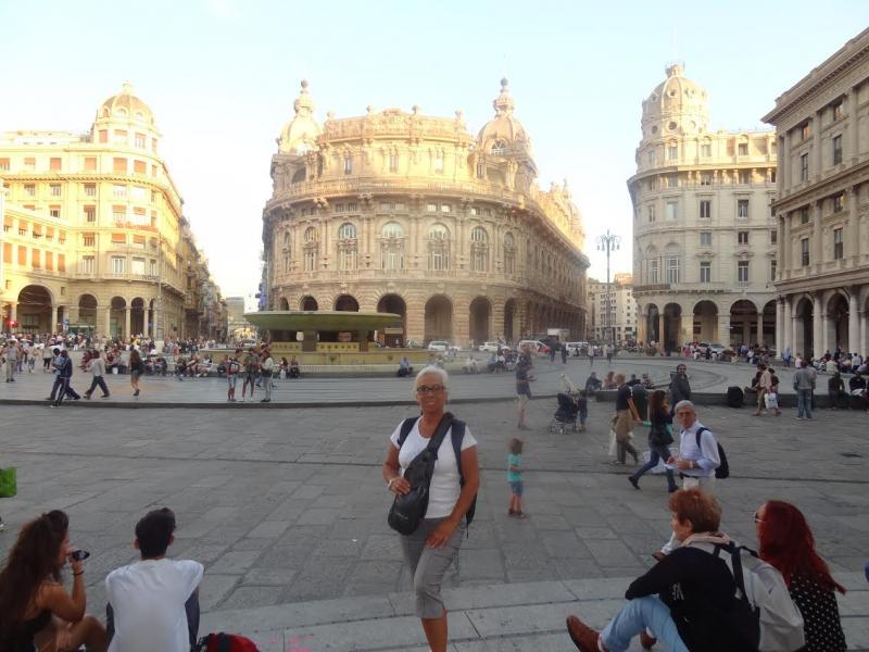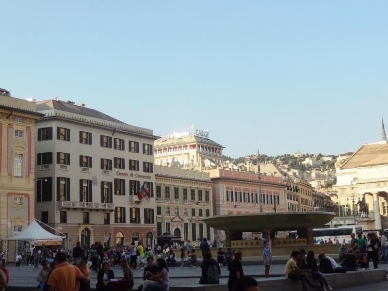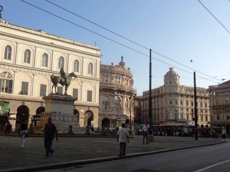 Sonunda Ferrari Meydanı’na çıkıyoruz. Bu meydana ismini veren kişi çok zengin bir tüccarmış ve meydandaki binalardan biri ona aitmiş. Bizde nasıl Beyoğlu, İstanbul’un merkezi ise Ferrari Meydanı da Cenova için öyle. Oldukça geniş bir alan ve bu alana çıkan 3-4 tane ana yol var. Bu yolların etrafında ise geniş caddeler ve bu caddelere sıralanmış lüks mağazalar, restoranlar, müzeler, tarihi binalar var. Cenova şehri ünlü kâşif Kristof Kolomb’un da doğduğu yer, bu nedenle Ferrari Meydanı’nda büyük bir heykeli var.