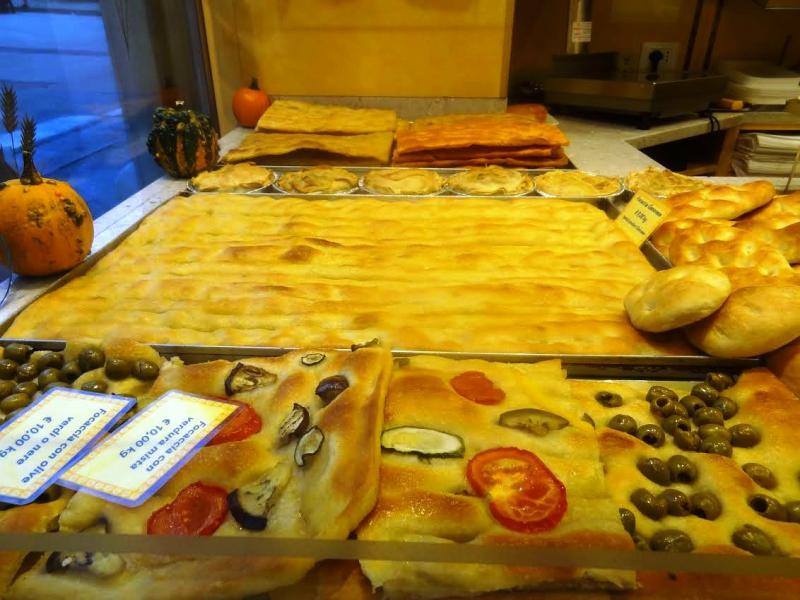 Uzun yürüyüşten sonra karnımız çok acıktığından gözlerimiz damak tadımıza yakın yiyecekler satan bir dükkân arıyor. İtalya hamur işlerinde bir cennet, bu yüzden kısa sürede küçük bir dükkân buluyoruz. Burası yerel bir pastane. Arkadaşlarımız Cenova’ya giderseniz mutlaka focaccia yiyin demişti. Gitmeden internetten nasıl bir şey diye bakmıştım ama yine de insanın gözüyle görüp tadına bakması lazım. Gerçekten mükemmel, pizza gibi ama hamuru biraz daha kalın, dikdörtgen şeklinde, yağlı ve yerken sanki ağzınızda eriyor. Zeytinli, susamlı, kekikli, domates ve peynirli olmak üzere birçok çeşidi var. Bir de aldıktan sonra ısıtmalarını rica ediyorsunuz, o zaman tadı daha güzel oluyor. Fiyatı ise çok ucuz, biz iki kişi 1,5 Euro’ya karnımızı doyurduk. Gittiğimiz dükkân Ferrari Meydanı’na çok yakın olduğu için hem öğlen hem de akşam yemeğimizi focaccia çeşitlerini deneyerek geçirdik. İtalya da böyle yerel dükkânlardan yiyecek almak hem ucuz hem de halkı tanımak açısından daha güzel. Bu dükkânda tanıştığımız insanlarda bize karşı çok anlayışlı ve sıcaktılar. Focaccıa’ların fotoğrafını çekmemize de izin verdiler : )