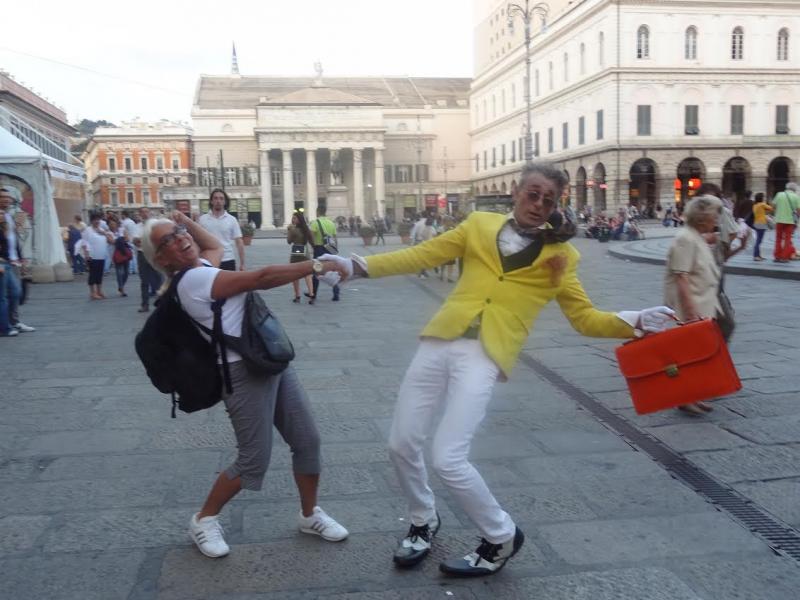 Ben ve arkadaşım kısa sürede çok yer görmek isterken farkında olmadan yorulmuşuz. Meydanda basamaklara oturup dinlenelim diyoruz. Bu sırada bir pantomim sanatçısı geliyor ve gösterisine başlıyor. Biz de ona destek olmak için cebimizdeki bozuklukları koymuş olduğu kâseye bırakıyoruz ve başımıza geleceklerden habersiz onunla fotoğraf çektirmek istiyoruz. Ortaya bol kahkahalı, komik görüntüler çıkıyor. Adam sanatçı tabii, onunla yan yana normal bir fotoğraf çektirmemize asla izin vermiyor.