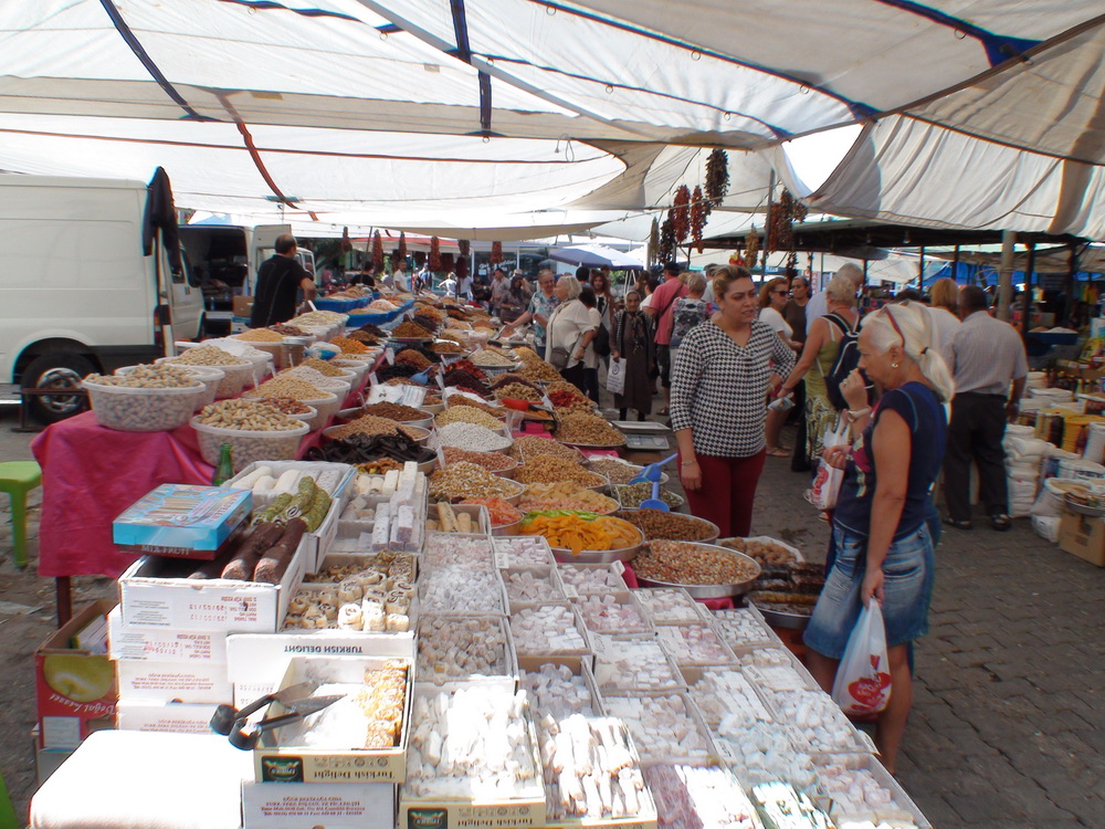 Her cumartesi günü kurulan meşhur Turgutreis pazarında meyveden Ege otlarına, yiyecekten giyeceğe, hediyelik eşyadan otantik el sanatlarına kadar herşeyi bulmak mümkün. Turgutreis’te narenciye özellikle mandalina, üzüm, incir yetiştiriciliği yapılmakta ve dolayısıyla tezgahları süslemekte.