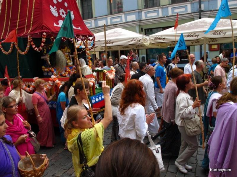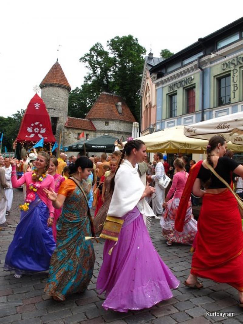Viru Caddesi - Allinn - aşağı mahallenin başlangıç bölümü. Burası hem turistler hem Estonyalılar için popüler bir mekân. Ben oradan geçerken Estonyalı “Hare Krishna”cılar gösteri yapıyorlardı.