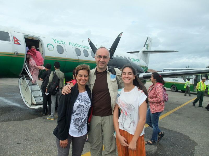 Turu yapan iki şirket var. Bizim şirketimizin adı “Yeti Airlines”. Her ikisi de benzer uçakları kullanıyorlar. Uçaklar diğer zamanlarda iç hatlar uçuşu yapıyor. Uçağımız 20 kişilik, ufak , pervaneli. 10 koltuk sağda, 10 solda. Çok uzun boylu olmamama rağmen ben uçağın içinde dik olarak ayakta duramıyordum. Uçağa binince hostesimiz uçağın güvenlik kurallarını anlatıp şekerlerimizi ikram etti. Artık havalanmaya hazırdık. Yavaş yavaş uçak pistten ayrılmaya başladığında herkesin yüzünden Everest'i görecek olmanın heyecanı ve aynı zamanda "bu uçakla sağ salim geri dönebilecek miyiz?" endişesi çok net okunuyordu.