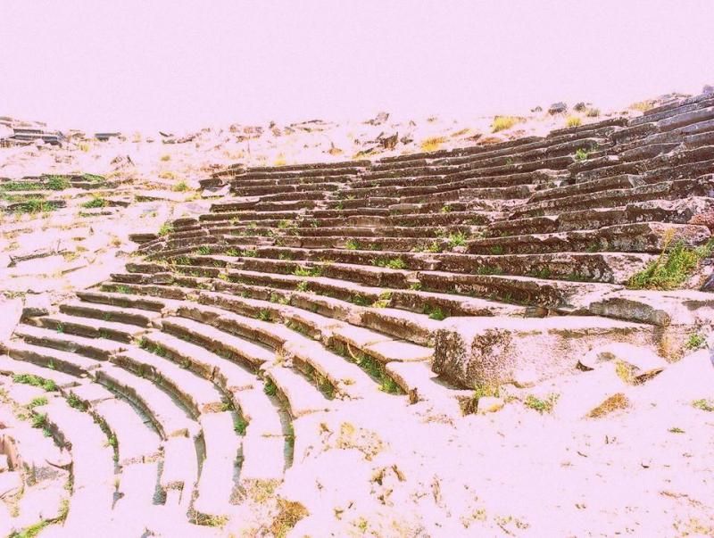 Tapınağın kuzeyinde tiyatro ile stadyum bulunur. Bunların yapımına M.S. II. yüzyılda başlandığı ve bunların çeşitli aralıklarla 3. yüzyıla kadar inşa edildiği bilinmektedir. Birbirine bitişik olarak yapılmış tiyatro ve stadyumun bugün için bilinen bir başka benzeri yoktur. Bugün, tapınaktan tiyatro ve stadyuma gitmek için kullanılan yolun üzerinde ise bir hamam yer almaktadır. Bu hamamın su ve ısıtma kanallarıyla [mermer] kaplamaları bulundukları yerdedir.