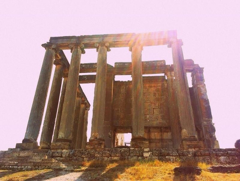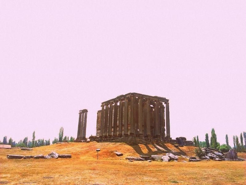 “Zeus” tapınağı, şehrin ana kutsal alanıdır. Bu tapınağın yapımına M.S. II. yüzyılın ikinci çeyreğinde, İmparator Hadrian döneminde başlanmıştır. Bu tapınağın en önemli özelliği, altında tonozlarla örtülü bir başka mekânın olmasıdır. Bu, Anadolu'da Roma döneminde pek alışılmamış bir uygulamadır ve bir benzerine henüz rastlanmamıştır. Tapınağın önünde bulunan kadın büstü biçimli akroter, tapınağın yalnızca Zeus'a adanmış olmayabileceğini göstermektedir. Son dönem araştırmaları ise bu tapınağın hem Zeus'a hem de Kybele'ye adanmış olamayacağını ortaya koymuştur. Tapınağın güney kısmında, büyük bölümü Bizans döneminde tahrip edilmiş bir odeon bulunmaktadır.
