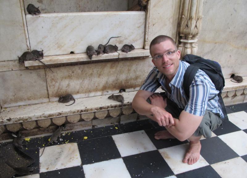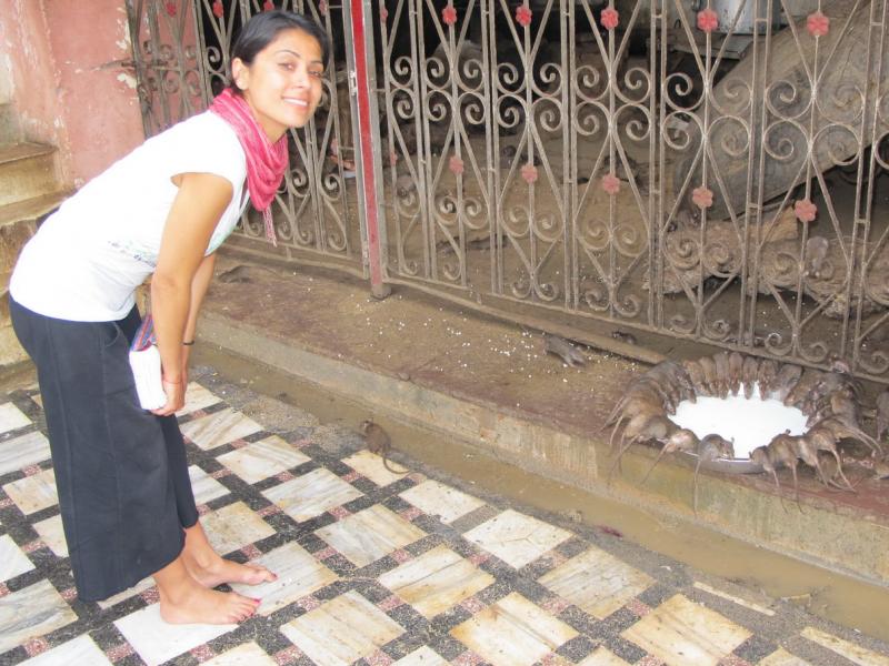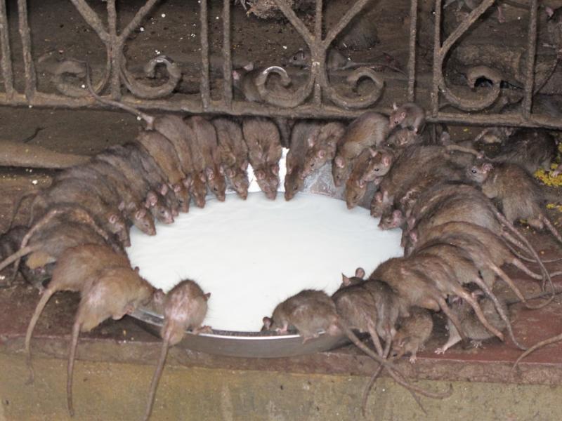 Bir tapınak görevlisinin yanına yanaşıp bu fare olayının hikâyesini soruyoruz. Rehberimizde bahsedilen efsaneye göre Karni Mata (bir Hint tanrıçası olan Durga’nın 14. yüzyıl reenkarnasyonu), Ölüm Tanrısı Yama’dan bir hikâye anlatıcısının hayatını bağışlamasını ister. Yama bunu yapmayınca da sinirlenip ölmüş olan tüm hikâye anlatıcılarını fare olarak tekrar dünyaya döndürür. Tapınak görevlisi ise bize başka bir efsane anlattı. Buradaki yöre halkının inancına göre, bu bölgede yaşayan insanlar öldükten sonra fare olarak tekrar dünyaya geliyorlarmış. Bu yüzden de etrafta dolaşan fareler böyle el üstünde tutuluyormuş.