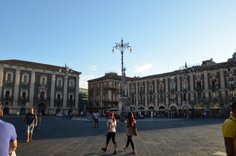 Katanya’nın merkezi oldukça ufak ve 1-2 saat içerisinde gezilebiliyor. Dikkatimizi çeken ilk şey binaların oldukça eski ve büyük olmaları. Ne yazık ki İtalya’daki diğer tarihi merkezlere nazaran daha yıpranmış görünüyorlar. Ancak yine de bir İtalyan dondurması eşliğinde gezip dolaşmalık sokakları var. Burada hoşlanmadığımız tek şey hem gündüz hem de akşam saatlerinde sokaklarda çok fazla tekinsiz görünümlü insanın olmasıydı. Özellikle akşam havalimanı otobüsünü ararken başka bir turistle birbirimize sığınmak zorunda kalıyoruz. Sicilya, Afrika kıtasına en yakın yerlerden birisi ve bu nedenle de çok fazla mülteci barındırıyor.