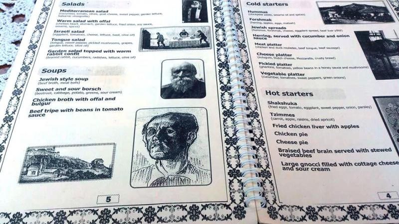 Son olarak gelelim Pid Zolotoi Rozovo olarak adlandırılan Yahudi restoranına... Burada menüde fiyatlar yok, isterseniz standart bir fiyat veriyorlar veya fiyatı pazarlık yaparak yemek bittikten sonra belirliyorsunuz. Ben bir öğle yemeğimi burada yedim. Garson yemek öncesi bir bakraç su ve havlu ile geldi elime su döktü, bu geleneksel karşılamaymış. Yahudi usulü çorba, ana yemek ve kahveden sonra ödemede pazarlık yapmak istediğimi söyledim. Garson patron o an için orada olmadığı için telefonla fiyat aldı, ancak ilk turda anlaşamadık. Garson, patron ile tekrar görüştü ve bana patronun; şu an için para vermeden gidebileceğimi, yarın gelmemi ve pazarlığa devam edebileceğimizi söylediğini aktardı.
