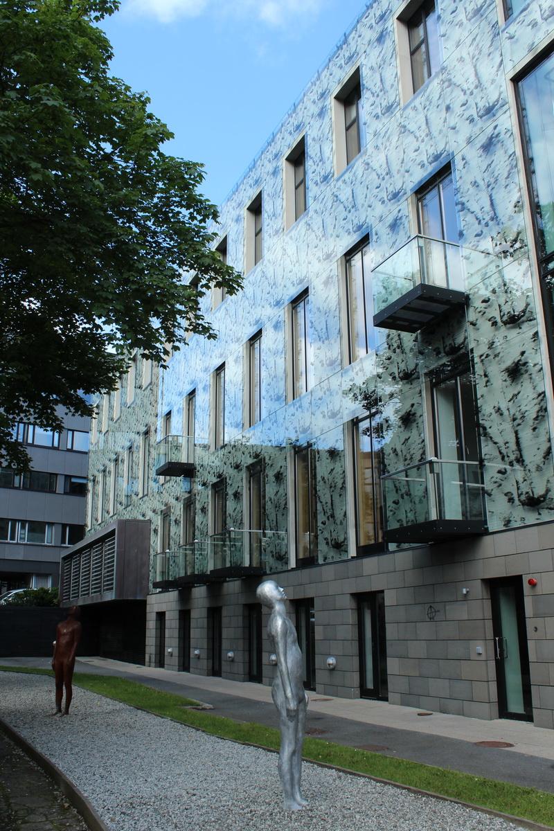 Cadde boyunca ilerlediğimizde sol tarafımızda yeni yönetim binası ve önündeki heykeller göze çarpıyor.