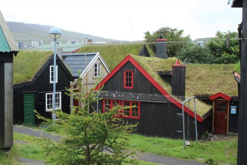 Buradaki evlerin çoğu siyah ya da kiremit rengi badanalı ve çatıları çim kaplı. Bunun belirli bir sebebi yok. Yani evi sıcak tutsun izole etsin diye çatıya çim ekmiyorlar. Eski bir gelenek sadece. Evlerinin doğaya uyumlu olmasını istiyorlar.