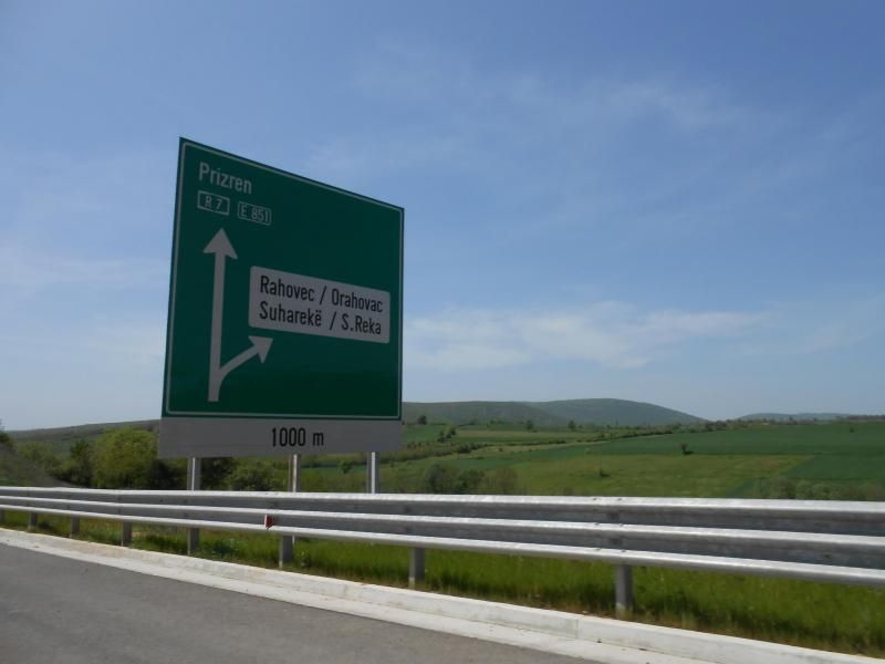 Üsküp-Prizren arası 100-110 km civarı ve taksi ile 2,5 saate yakın gidiyorsun. Yollar dar ve virajlı. Fakat hiç tehlikeli yada bozuk yollar değil. Uçurum falan yok. Makedonya-Kosova sınırında hiç sorun olmuyor, pasaport kontrolünü 5 dakikada yapıyorlar. Sınırda birkaç fotoğraf çekilip tekrar devam ediyoruz.Prizren'e varmadan Ferizaj diye bir şehirden geçiyoruz.