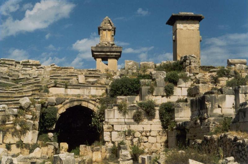 Antik kent girişinde yer alan İmparator Vespasianus anısına yapılmış kemerin kalıntıları ve biraz ilerdeki tiyatro, Likyalıların Romalılar ile olan serüvenini akıllara getirir.