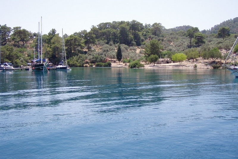 FETHİYE ÇEVRESİNDEKİ ANTİK KENTLER:Gemiler Adası (St. Nicholas): MS 5-11. Yüzyıllar arası Bizans dönemine ait kilise şapel ve tarihi yapı kalıntıları bulunmakta. Bizans döneminde burası Ortodoks rahiplerinin eğitim merkezi olması nedeni ile önem taşımaktadır. Kristal berraklığındaki mavi suları ile de ünlü. Denize girmek ve çeşitli su sporları için de ideal bir bölge.