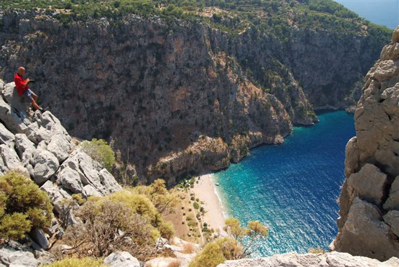 KELEBEKLER VADISI: Ölüdeniz’den 5-6 kilometre uzaklıktaki bu vadinin çevresi, yüksekliği 350 metreyi bulan dağlarla çevrili. Kanyon adını Temmuz – Eylül arasında bölgede bolca görülen Kelebeklerden almıştır. Yaz – kış akan küçük şelale ve çevredeki zakkum ağaçları ile cennetten bir köşe burası. Fethiye bölgesinde mutlaka ziyaret edilmesi gereken yerlerin başında yer alıyor.