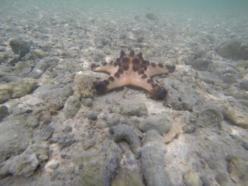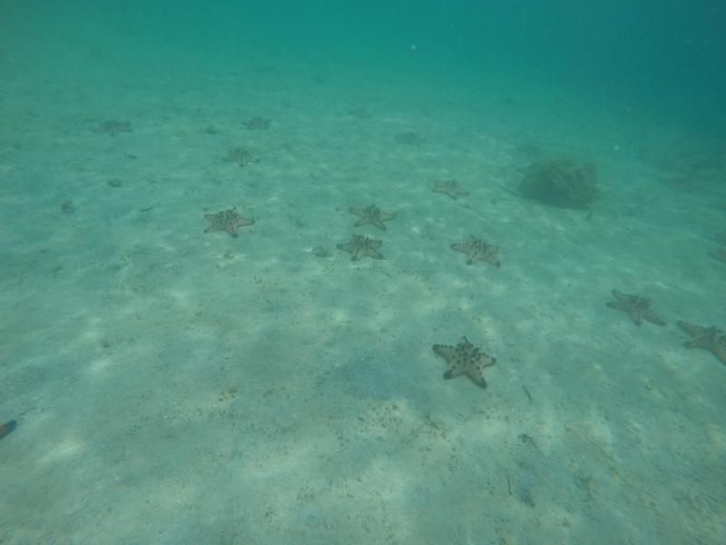 Alabildiğince uzanan sahilde şnorkeller ile denize girerek, deniz yıldızlarını gördük.