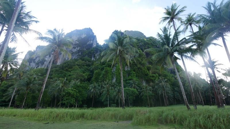 Sahilde durup arkanıza doğru baktığınızda, olabildiğince göğe uzanan ağaçlarla kaplı kayaları ve upuzun palmiye ağaçlarını görüyorsunuz.