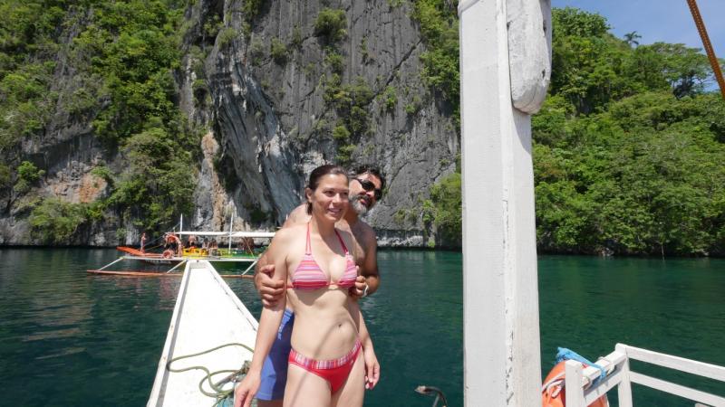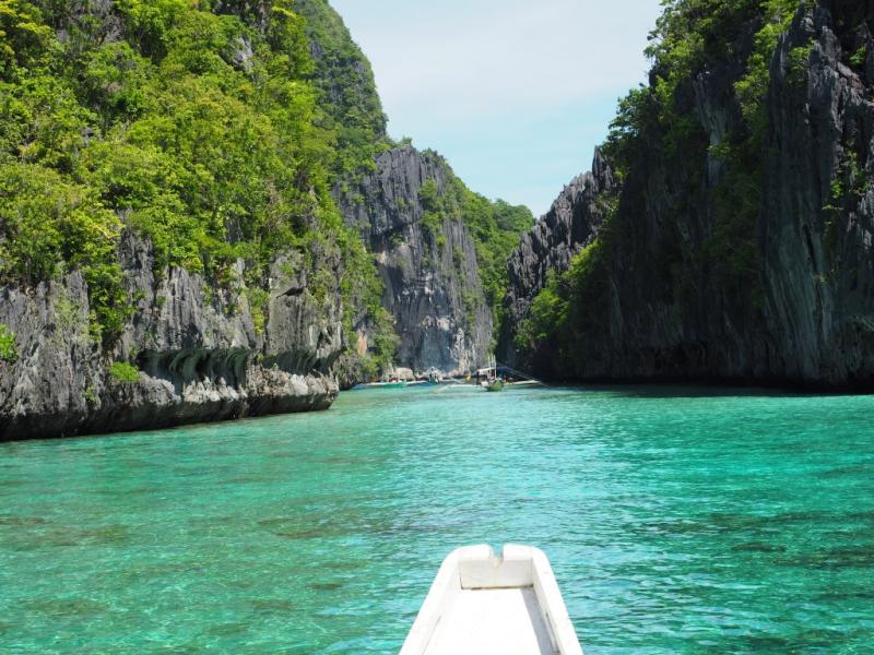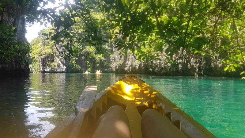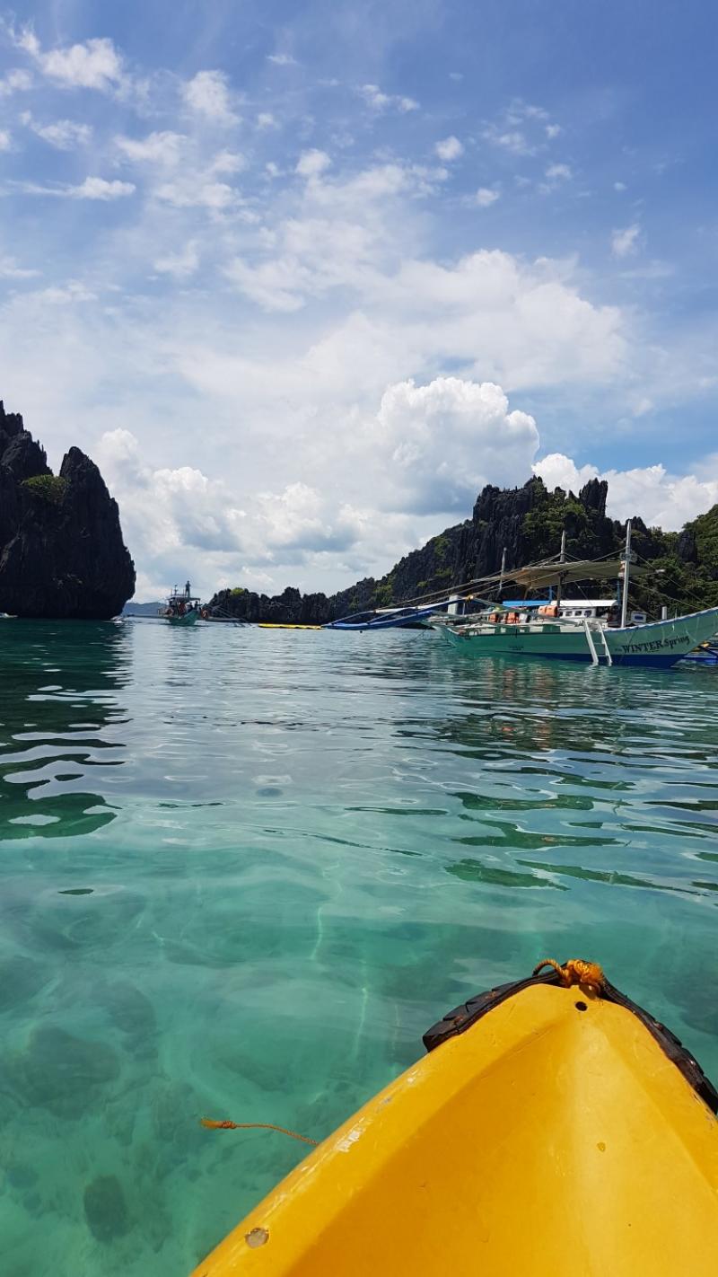 Teknemiz demir attı ve bize 3 tane ikişer kişilik kano gönderdiler. Kano başına 300 peso ödeyip, kanolara binerek, ufacık bir delikten geçip, Küçük Lagün'ün içine girdik. Gerçekten çok etkileyiciydi.