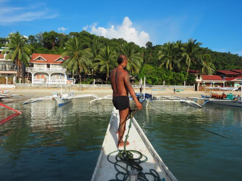 Bir gün önce Puerto Princesa’dan çıkıp, yolda Batak Kabilesi’ni ziyaret ettiğimiz için El Nido’ya varışımız gece geç saatleri buldu. İlk gece için El Nido merkezinin biraz dışında havaalanına yakın bir bölgede yer alan butik bir otelde rezervasyon yaptırmıştık: Villa Libertad. Oteli bulmamız biraz zor oldu ama sonuçta bulduk. Otel biraz Bali’deki tipik otelleri andiran yapıda. Mesela otelde resepsiyon ve restoran kısmına ayakkabı ya da terliklerinizi çıkartarak giriyorsunuz. Ahşabın bolca kullanıldığı bir yapı. Otele vardığımız gibi odalara eşyalarımızı bırakıp doğruca restorana yöneldik. Ancak her birimizin verdiği sipariş birbirinden farklı zamanlarda geldi. İçecekler ise yemek sonunda. O noktada otel güzel olsa da hizmet kalitesi ve otelin yerinden memnun kalmadığımız için ertesi gün oteli değiştirmeğe karar verdik. Ertesi sabah otelde kahvaltı yaptıktan sonra bir gün önce bizi Puerto Princesa’dan El Nido’ya getiren şoförümüz aldı ve yeni ayarladığımız El Nido merkezindeki otele transfer etti. Biz otele valizlerimizi bırakırken bize burada tekne turlarını yapacağımız yerel acenta ile tanıştırdı.