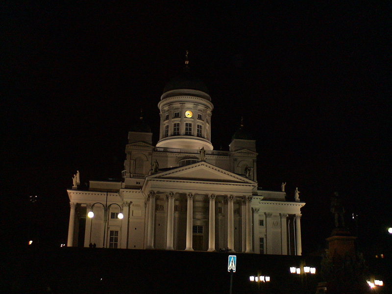 Kaupatbori’den biraz ilerlediğimizde Senato Meydanı’na geliyoruz. Oldukça geniş büyük bir meydan burası. Meydanın en görkemli yapısı beyaz Luteryan Rus Katedrali (St. Nicholas Katedrali). Soğan kubbeli katedral ve meydandaki Rus çarı II. Alexander heykeli Alman mimar Karl Ludwig Engel’in eseri. Finlandiya’da Rus çarının heykeli ne demek oluyor diye düşünenlere, Rus hakimiyeti döneminde yapılan bu heykele Finlandiya halkı bağımsızlıktan sonra dokunmamış, işgal yıllarında Çar II. Alexander halka iyi davrandığından, kendi para birimleri ve dillerini kullanmalarına müsaade ettiğinden, Çar’a duydukları sempati ve minnetin ifadesi olarak yerinde bırakılmış. Katedral önünde genellikle öğrencilerin buluşma, oturma yeri olarak kullanılan merdivenler uzaktan bakıldığında duvar gibi görülüyor. Ancak çok yakınına gidince merdiven olduğunu anlayabiliyorsunuz. Katedralin dışı sade ve görkemli, içi ise oldukça süslü. Tabii biz bu katedrali gece fotoğraflamışız o nedenle bembeyaz olduğu burada pek farkedilmiyor.